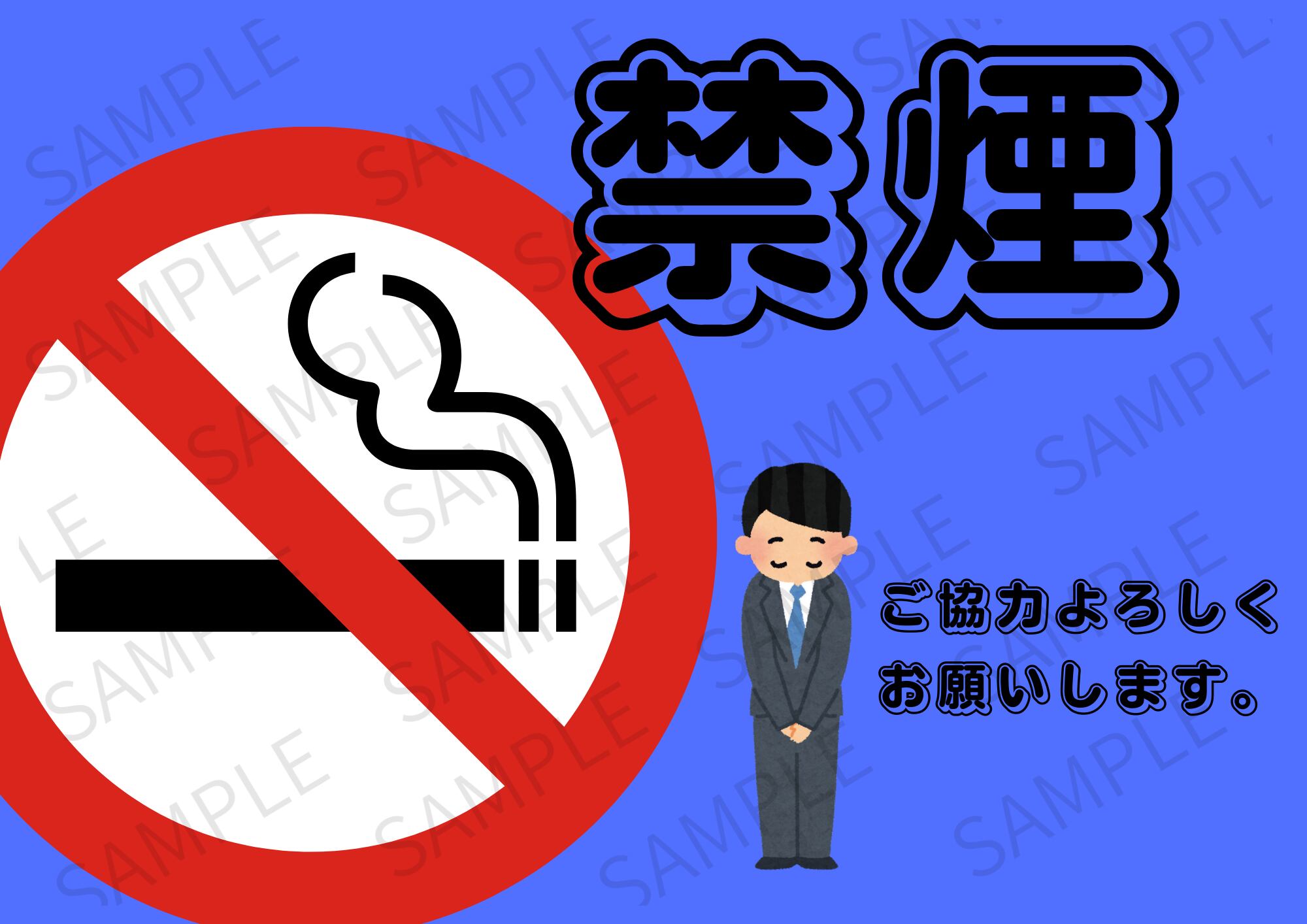 【A4ポスター用】店内禁煙ポスター 画像 デザイン10(ブルー)