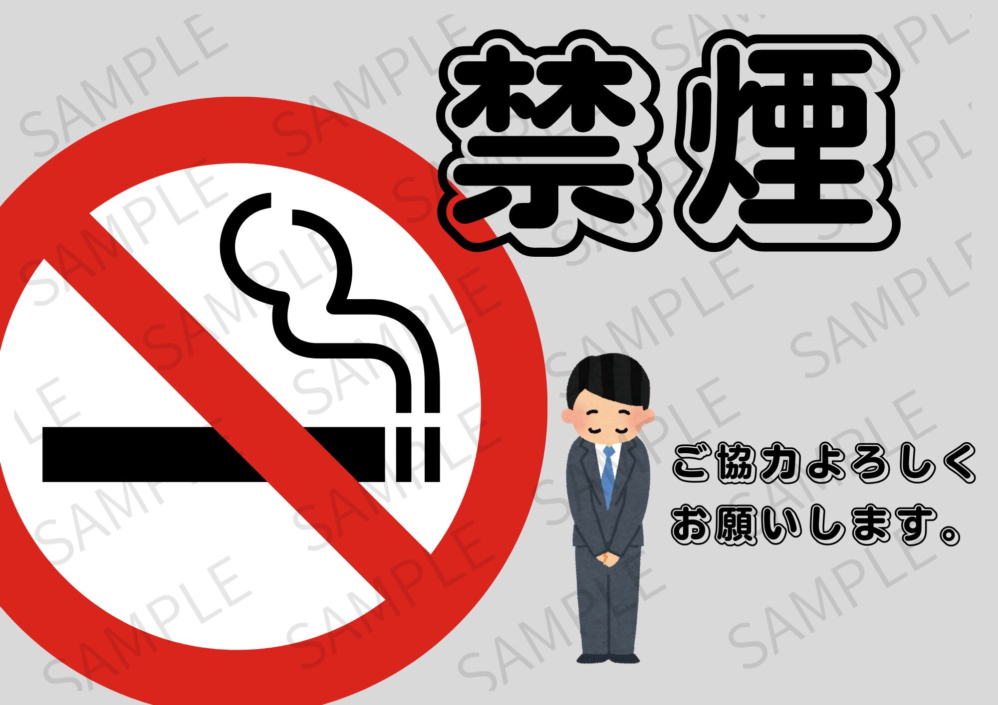 【A4ポスター用】店内禁煙ポスター 画像 デザイン10(グレー)