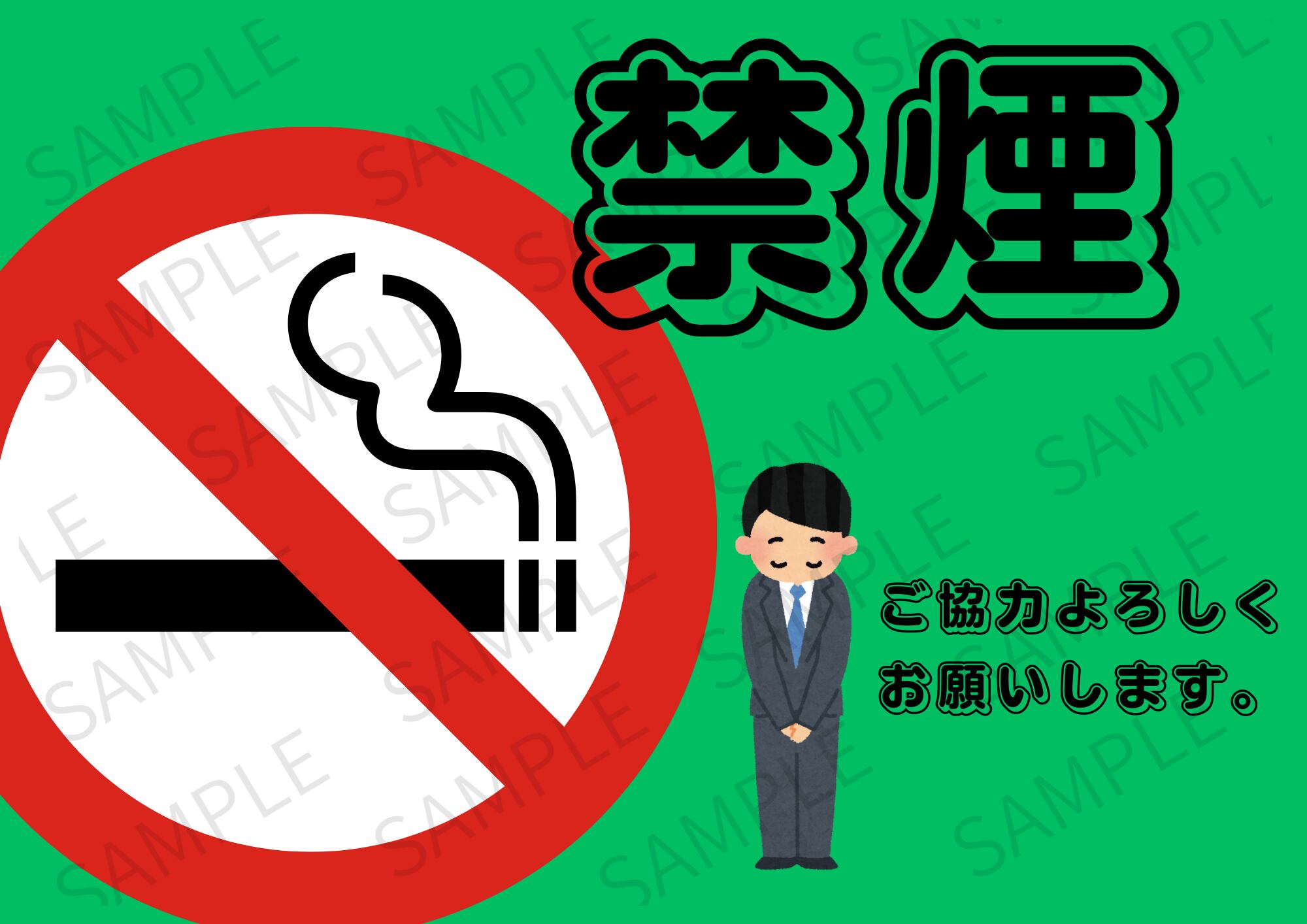 【A4ポスター用】店内禁煙ポスター 画像 デザイン10(グリーン)