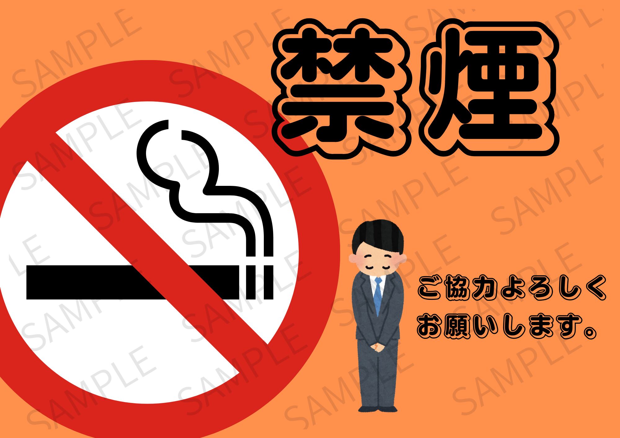 【A4ポスター用】店内禁煙ポスター 画像 デザイン10(オレンジ)