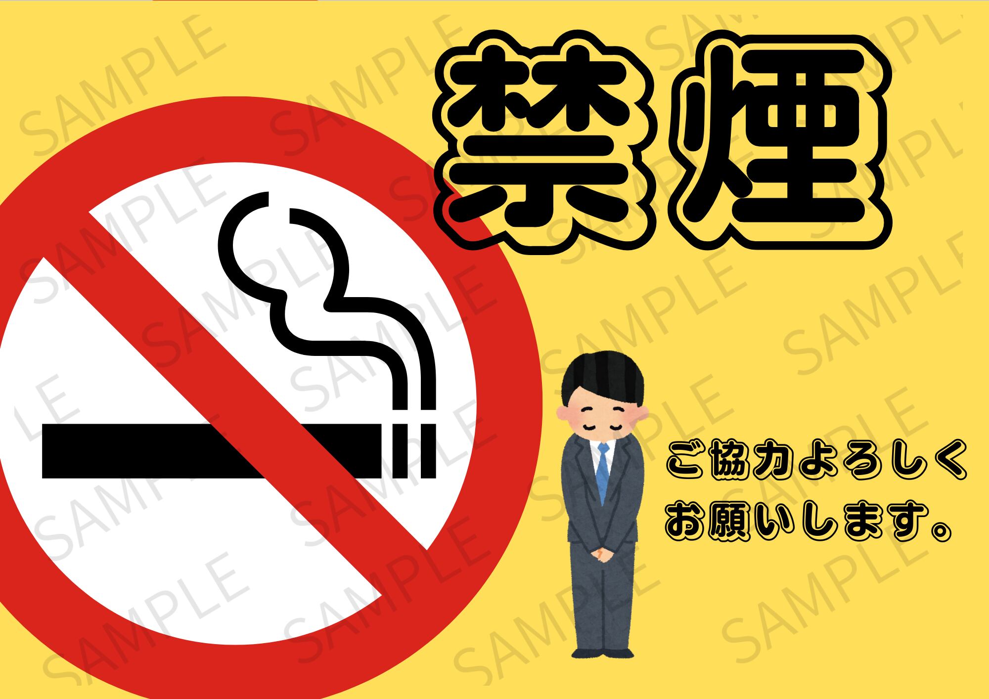 【A4ポスター用】店内禁煙ポスター 画像 デザイン10(イエロー)
