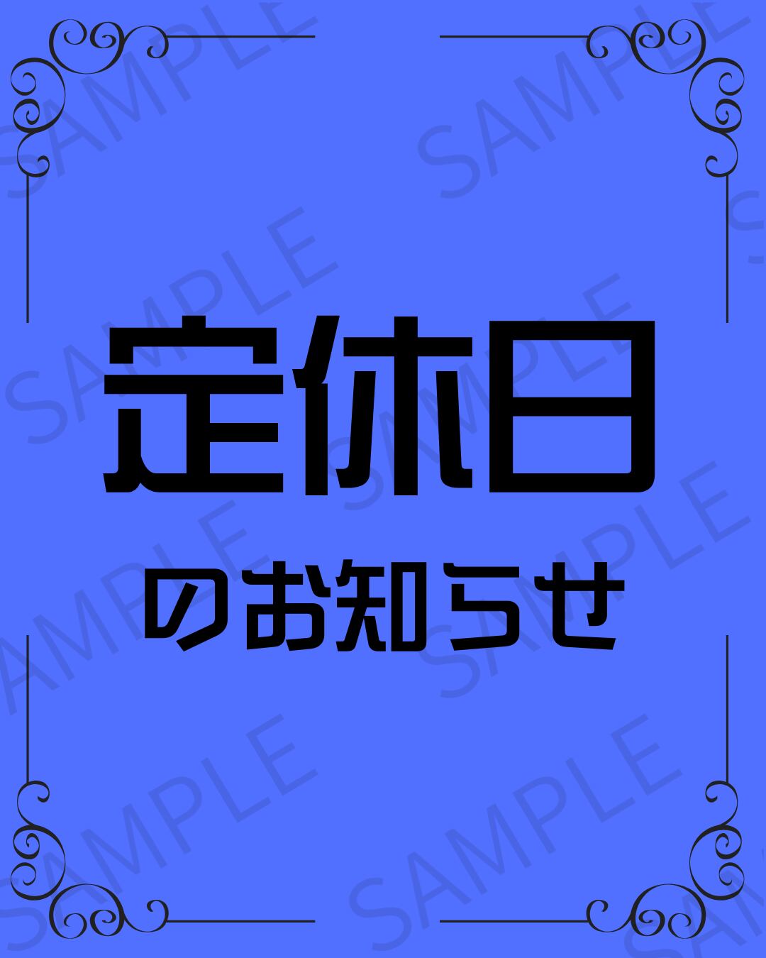 お店の定休日を簡単に告知できる、シンプルで見やすい「定休日のお知らせ」画像です。