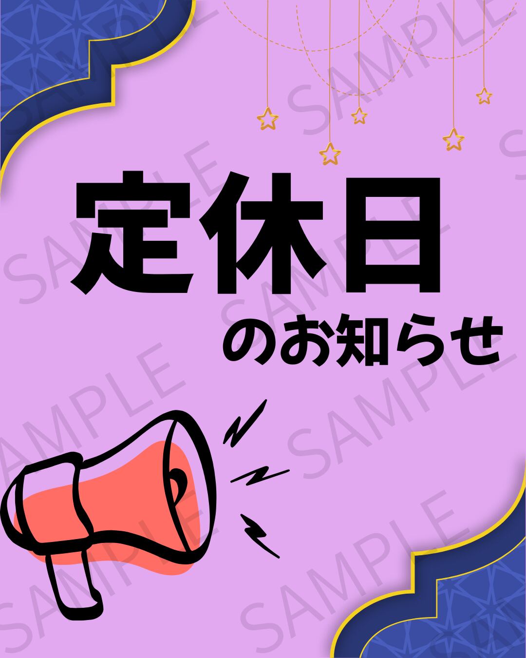 お店の定休日を簡単に告知できる、シンプルで見やすい「定休日のお知らせ」画像です。