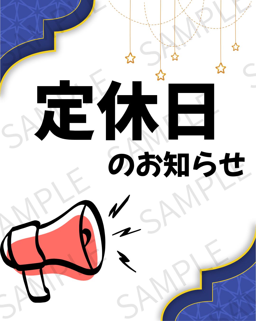 お店の定休日を簡単に告知できる、シンプルで見やすい「定休日のお知らせ」画像です。
