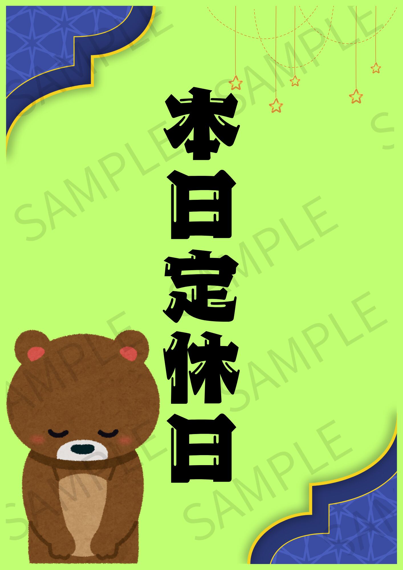 【A4ポスター用】定休日のお知らせ画像 デザイン1(ライトグリーン)