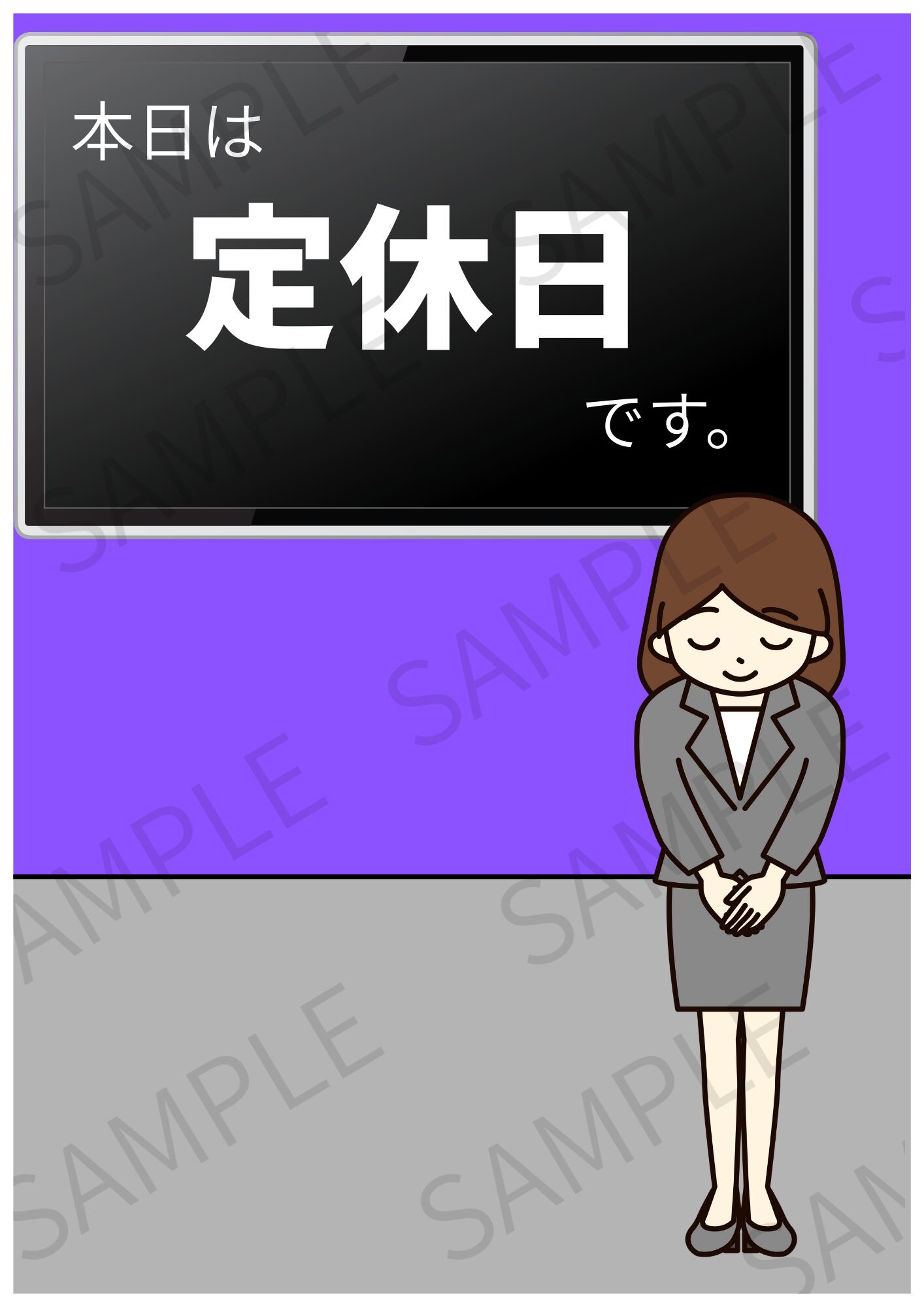 【A4ポスター用】定休日のお知らせ画像 デザイン2(パープル)