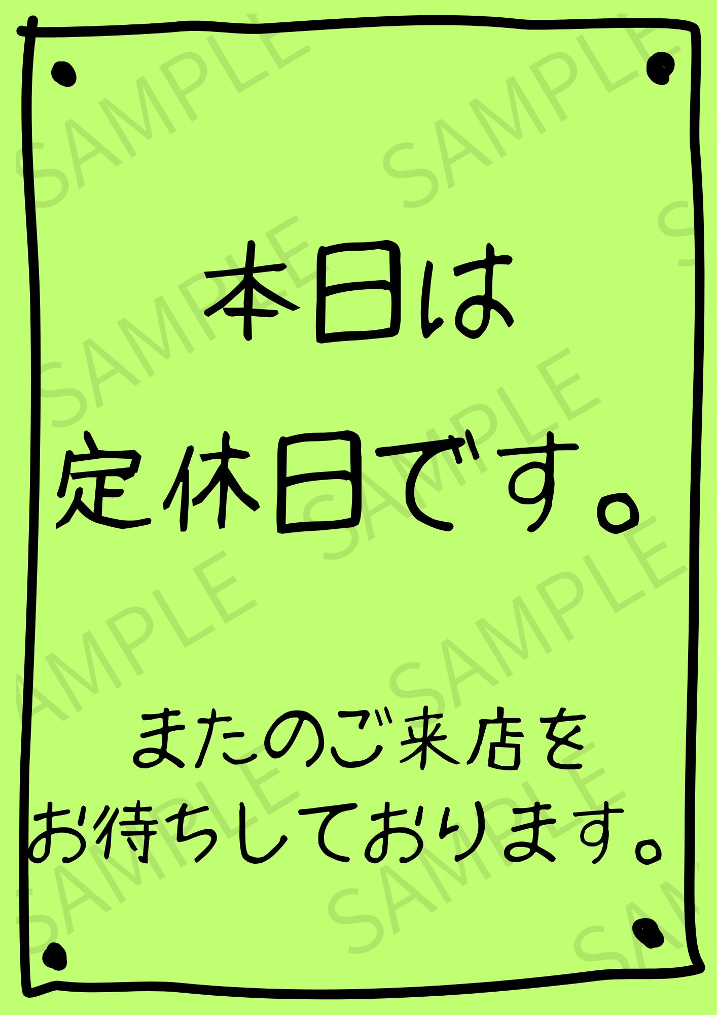【A4ポスター用】定休日のお知らせ画像 デザイン5(ライトグリーン)