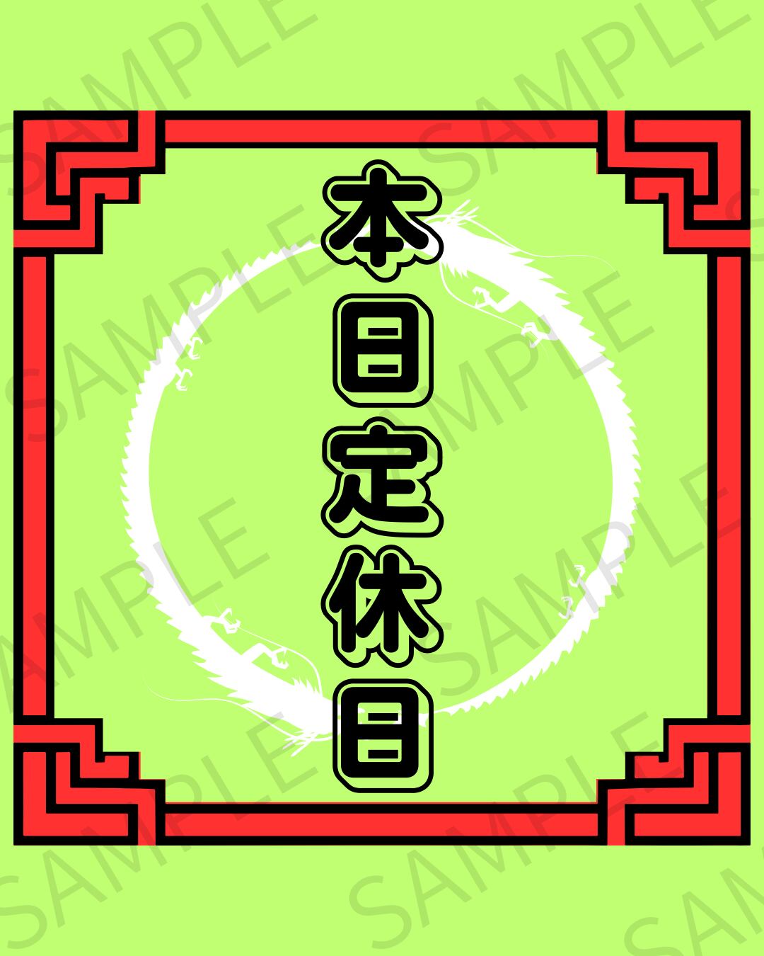 お店の定休日を簡単に告知できる、シンプルで見やすい「定休日のお知らせ」画像です。