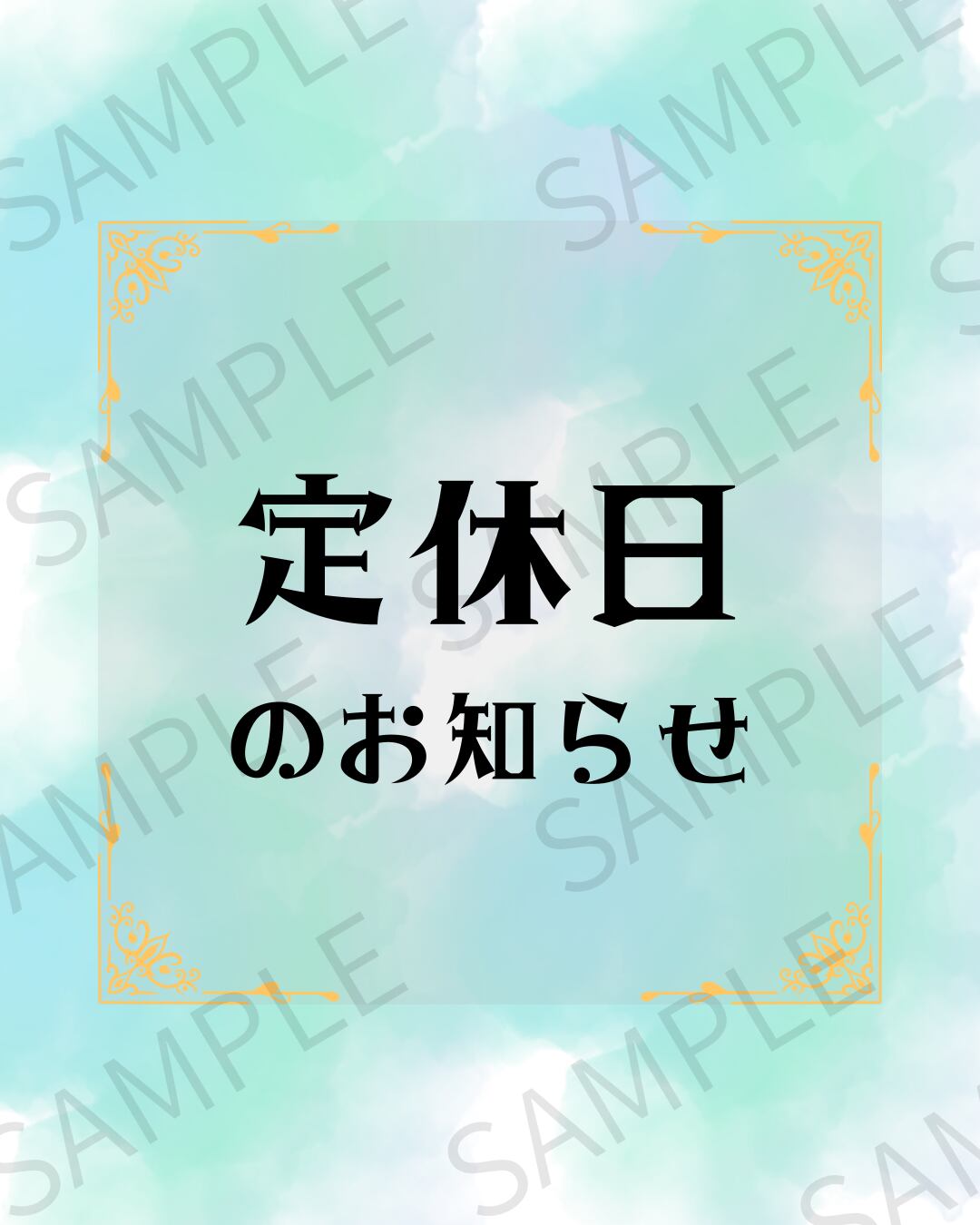 お店の定休日を簡単に告知できる、シンプルで見やすい「定休日のお知らせ」画像です。