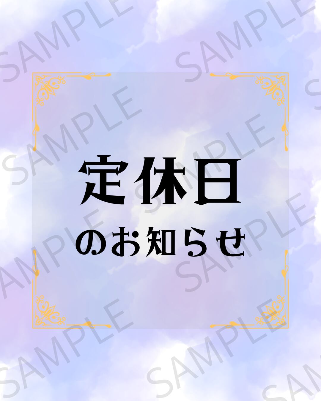 お店の定休日を簡単に告知できる、シンプルで見やすい「定休日のお知らせ」画像です。