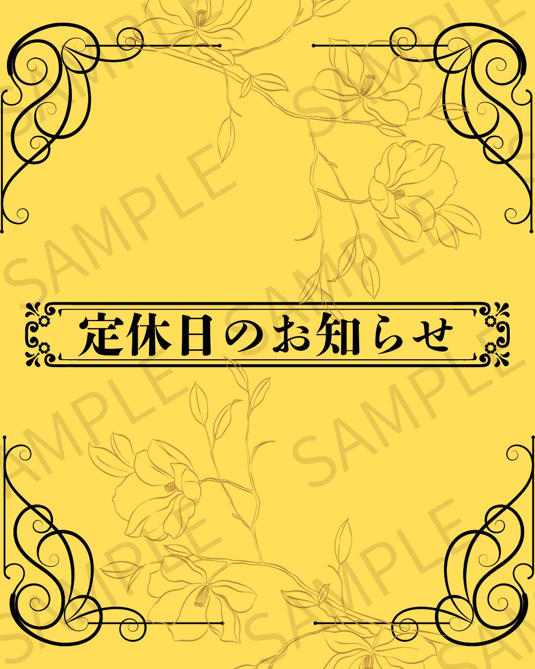 【Instagram投稿用】定休日のお知らせ画像 デザイン9(イエロー)