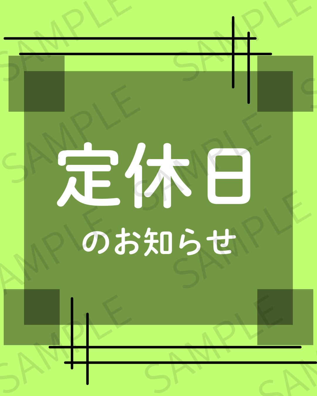 お店の定休日を簡単に告知できる、シンプルで見やすい「定休日のお知らせ」画像です。