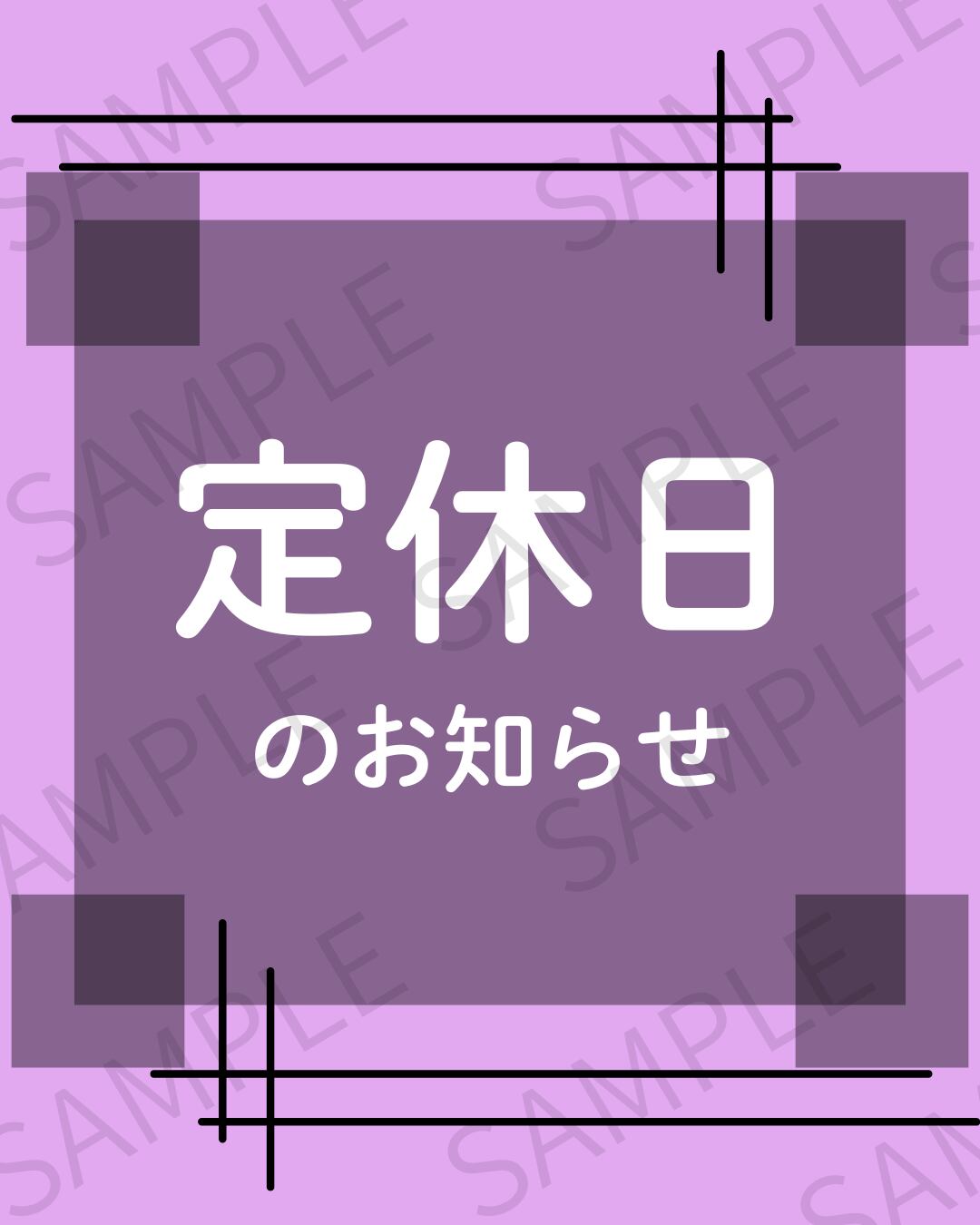 お店の定休日を簡単に告知できる、シンプルで見やすい「定休日のお知らせ」画像です。