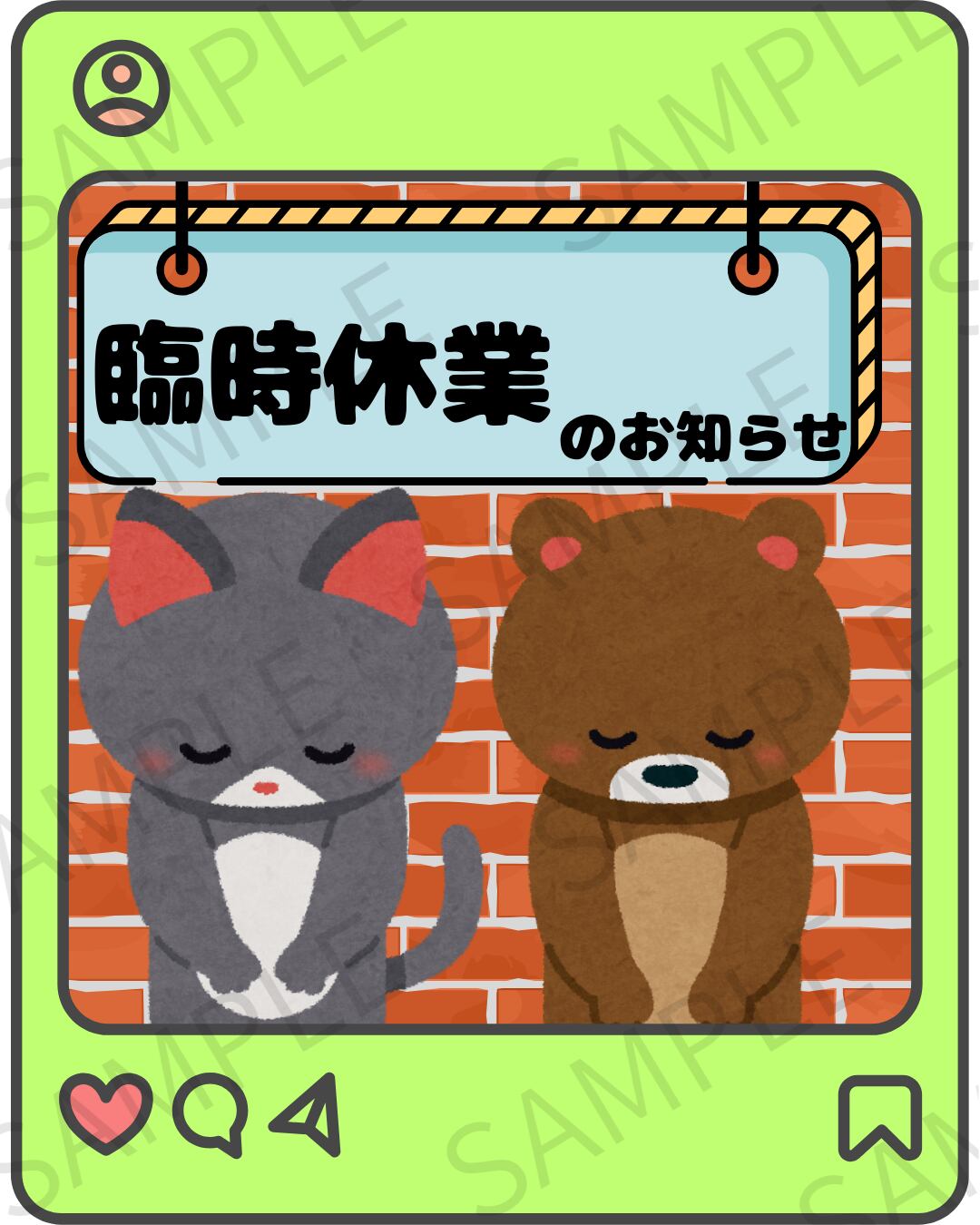 臨時休業のお知らせをSNSで発信する際に便利なデザイン画像です。