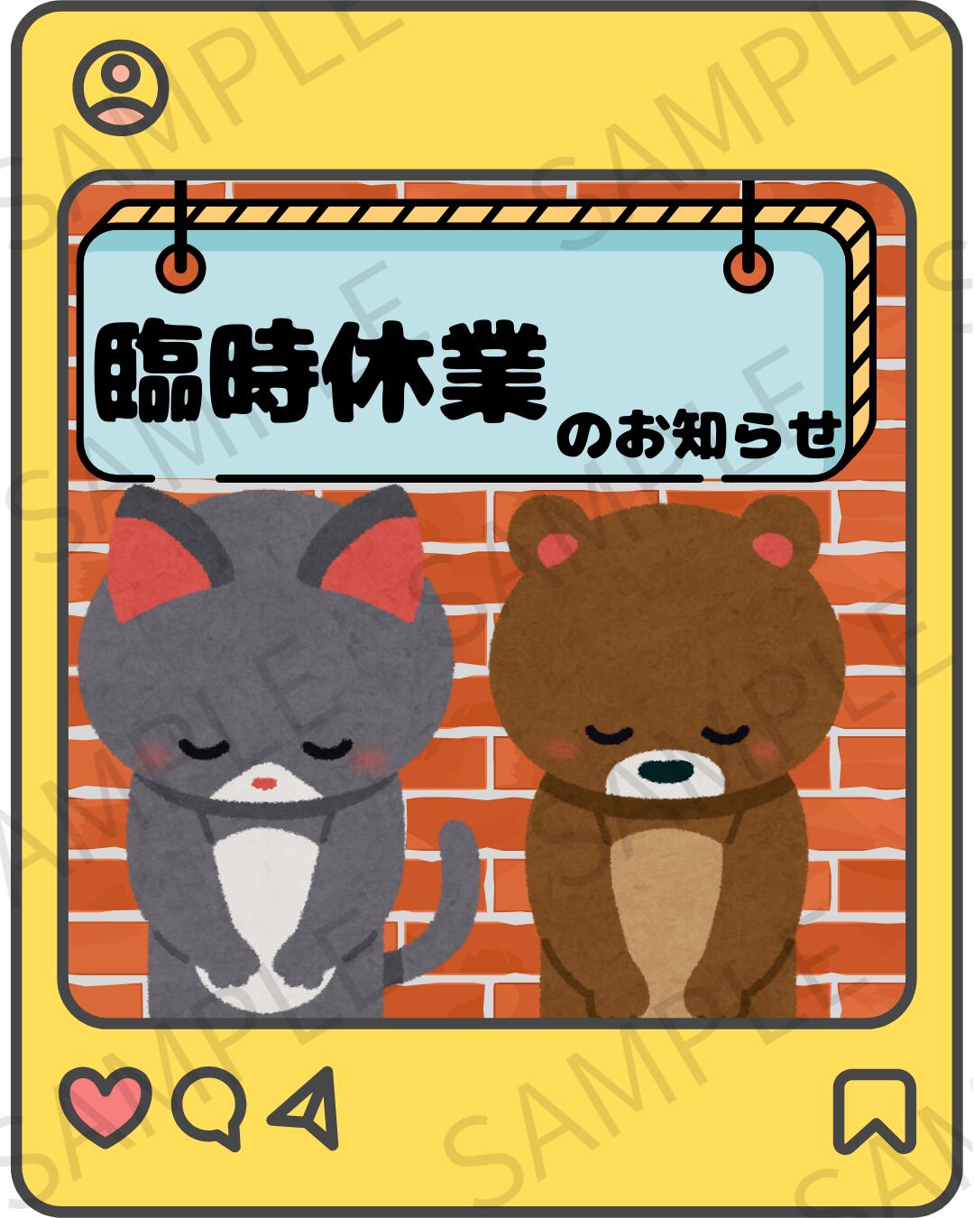 【Instagram投稿用】臨時休業のお知らせ画像 デザイン1(イエロー)