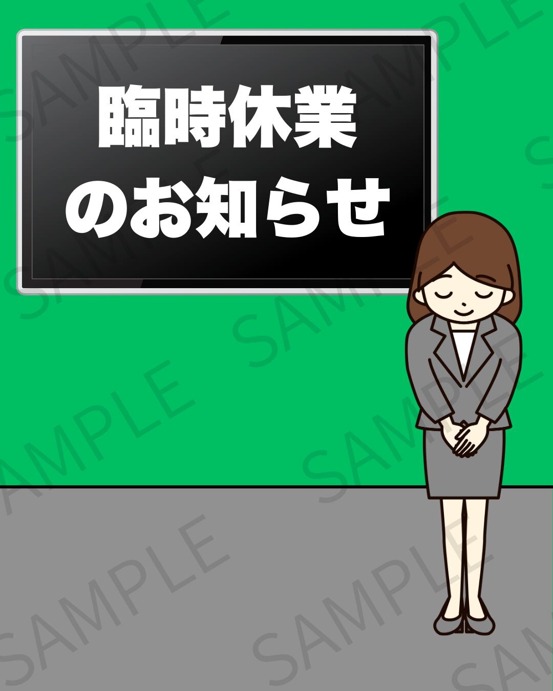臨時休業のお知らせをSNSで発信する際に便利なデザイン画像です。