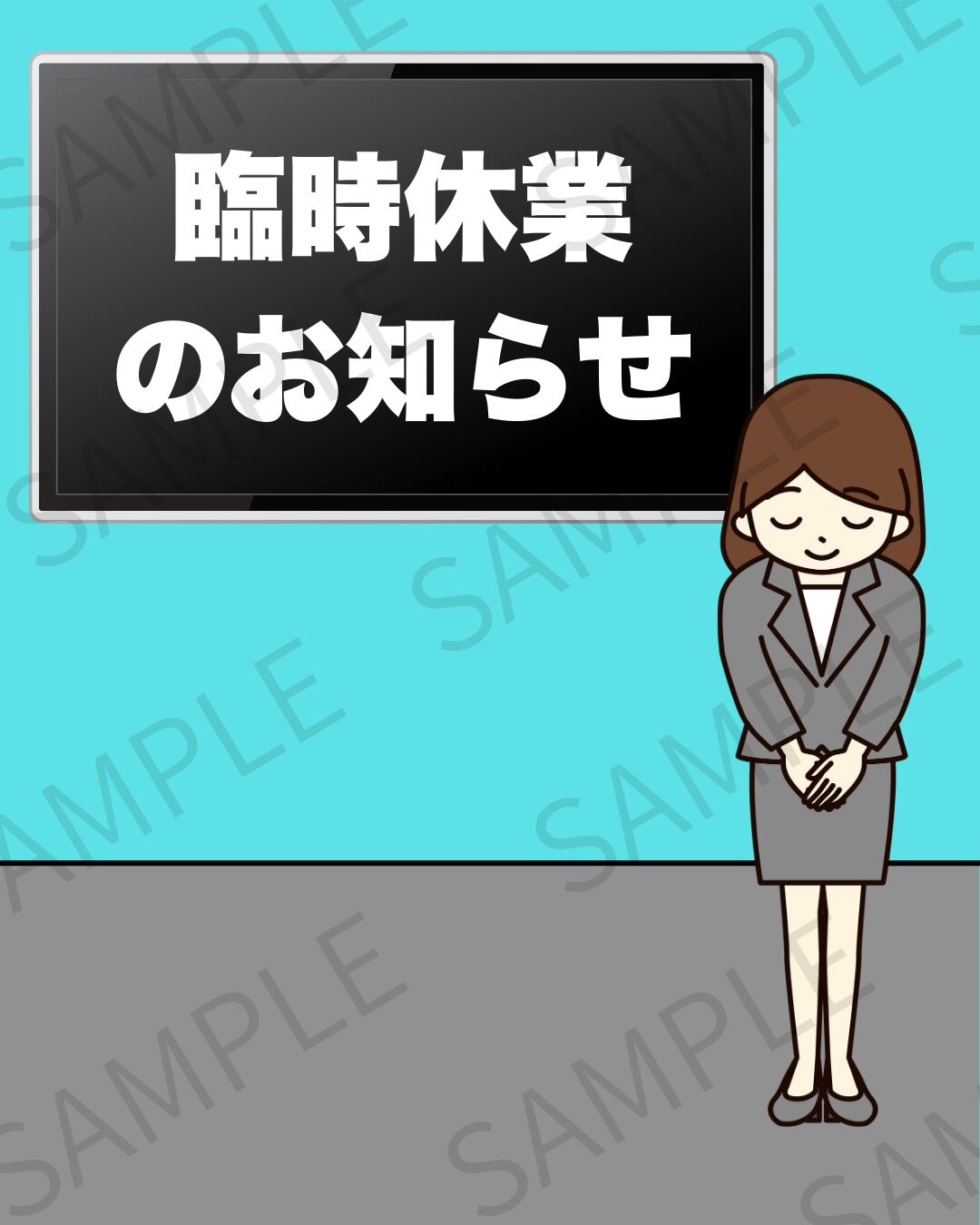 臨時休業のお知らせをSNSで発信する際に便利なデザイン画像です。