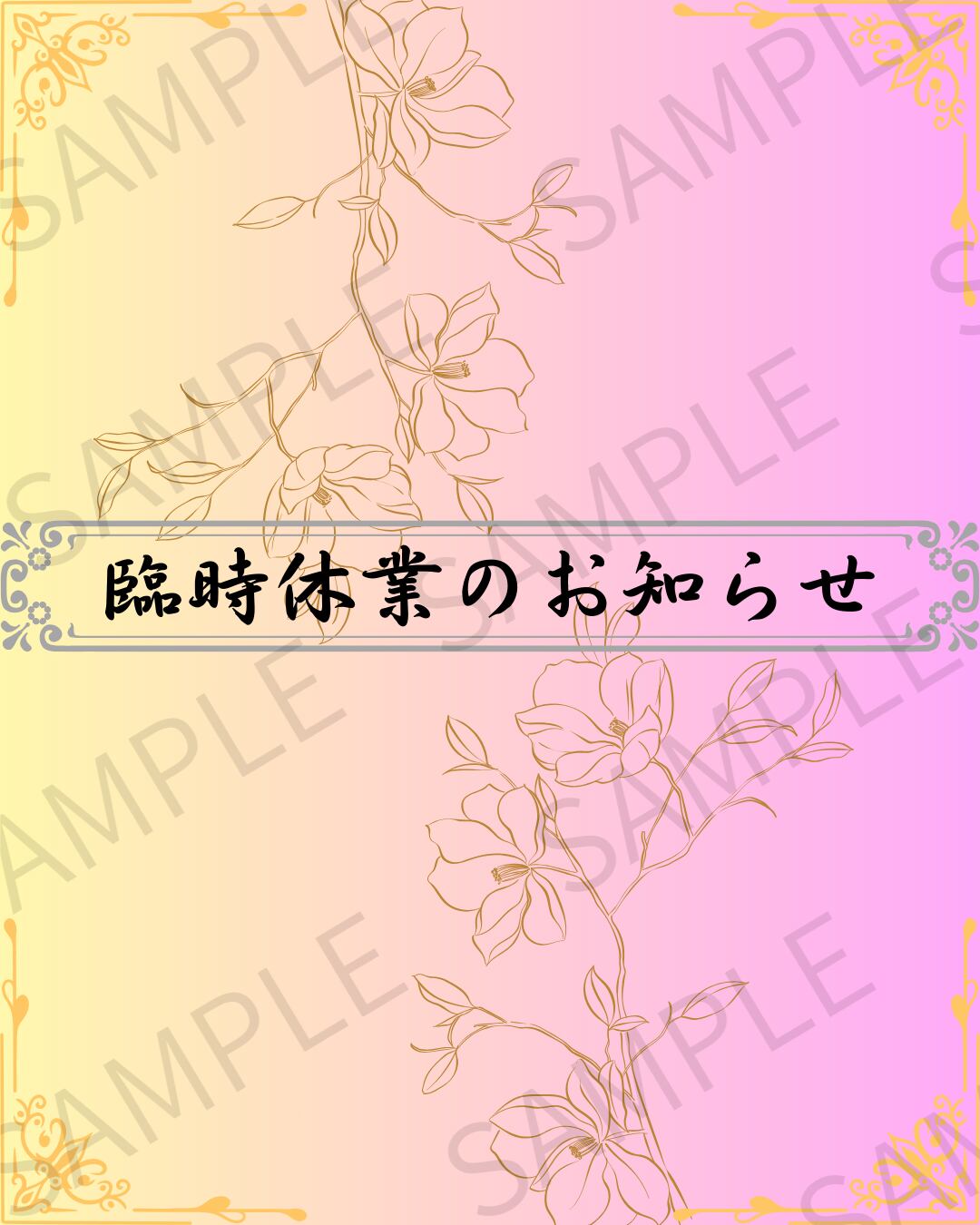 【Instagram投稿用】臨時休業のお知らせ画像 デザイン3(グラデーション)