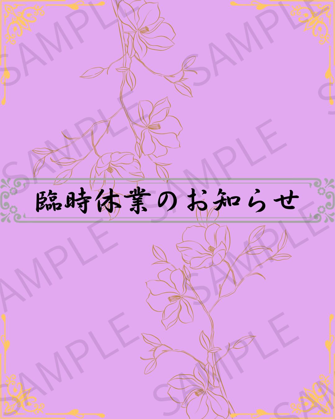 臨時休業のお知らせをSNSで発信する際に便利なデザイン画像です。