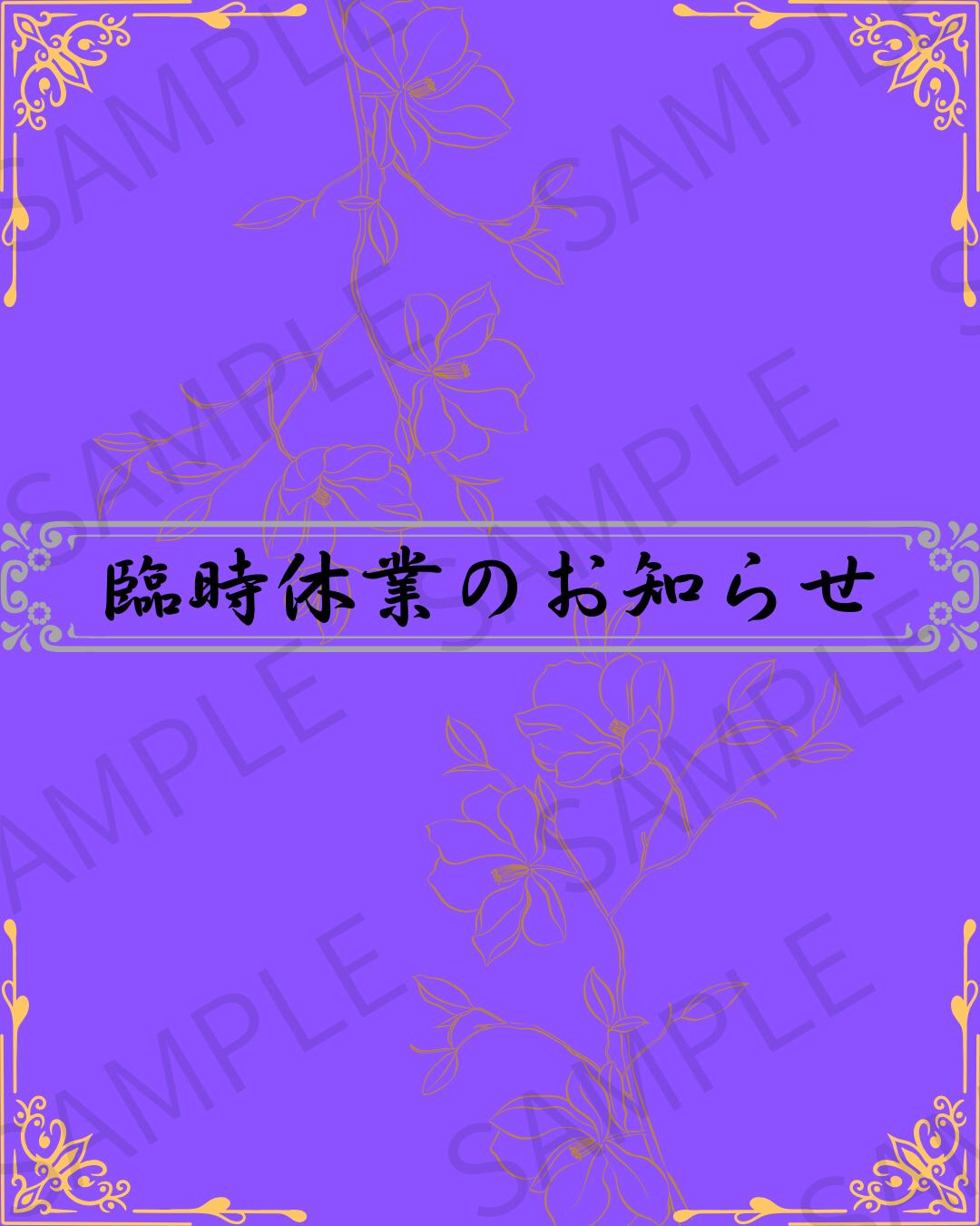 【Instagram投稿用】臨時休業のお知らせ画像 デザイン3(パープル)