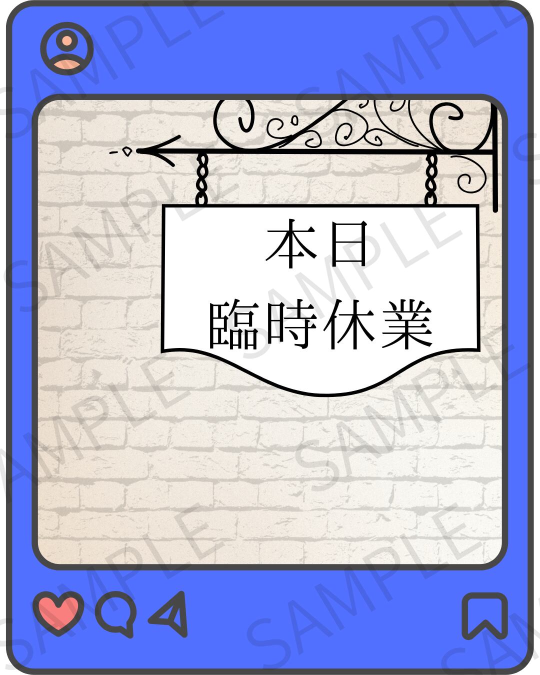 臨時休業のお知らせをSNSで発信する際に便利なデザイン画像です。