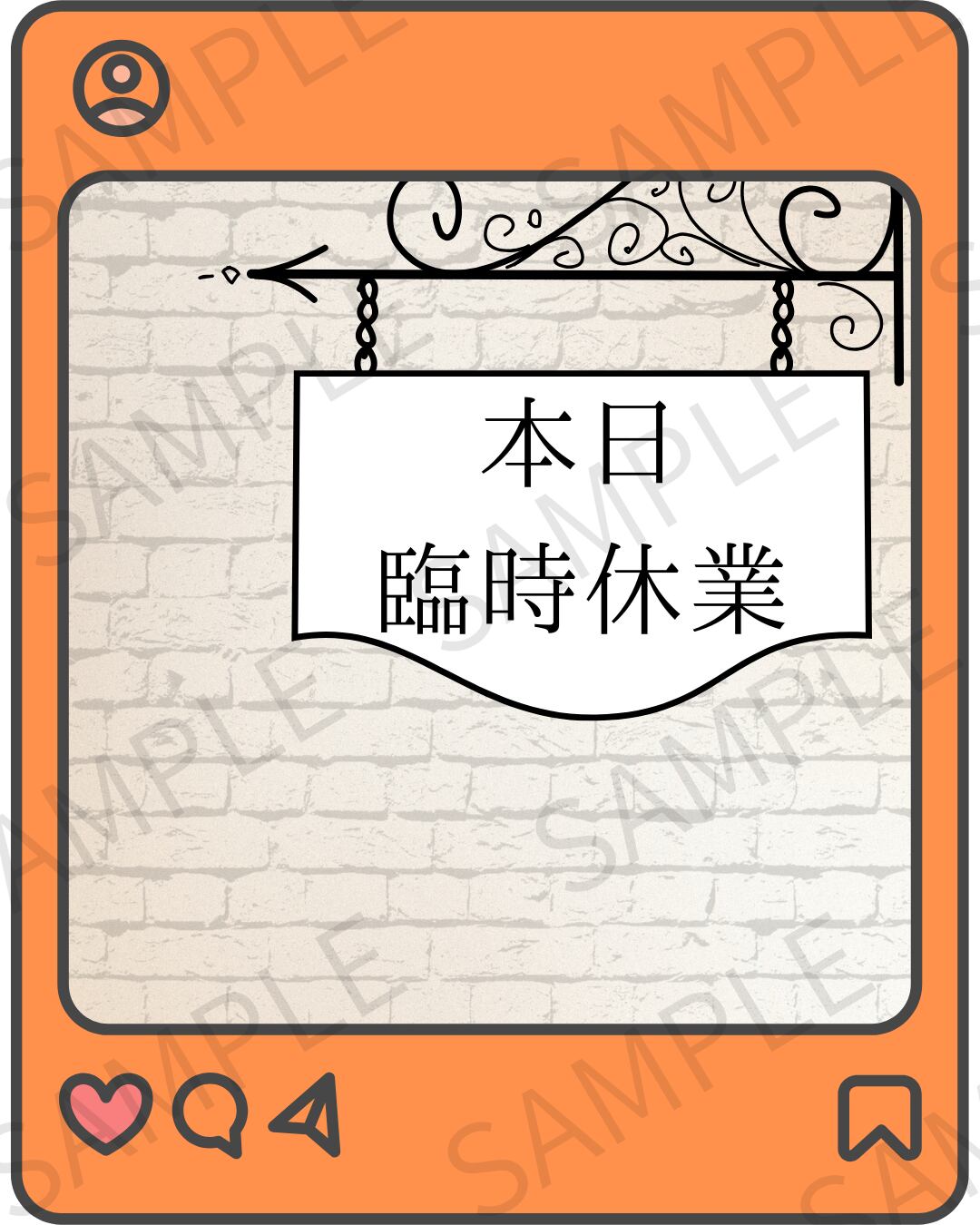 【Instagram投稿用】臨時休業のお知らせ画像 デザイン4(オレンジ)