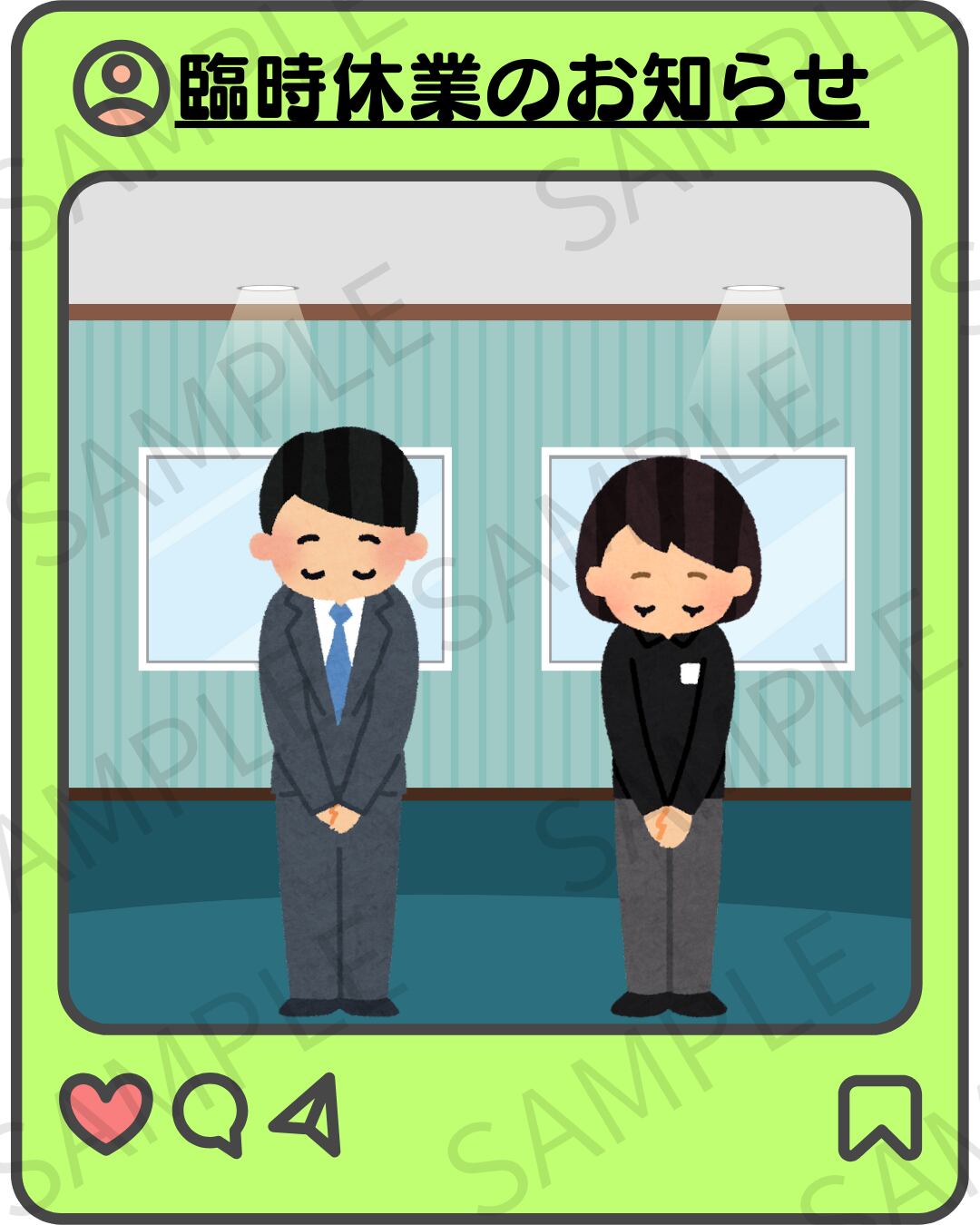 臨時休業のお知らせをSNSで発信する際に便利なデザイン画像です。