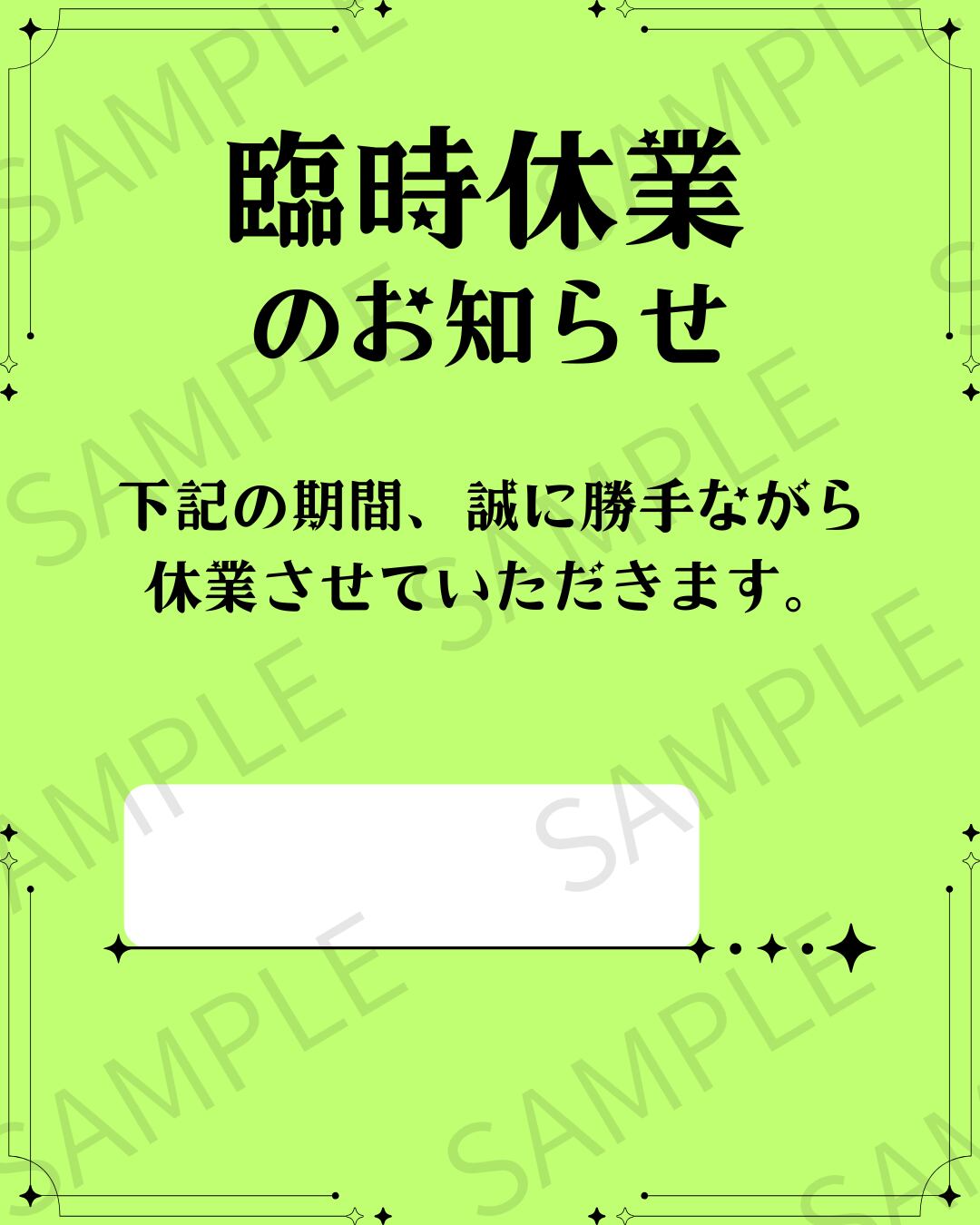 臨時休業のお知らせをSNSで発信する際に便利なデザイン画像です。