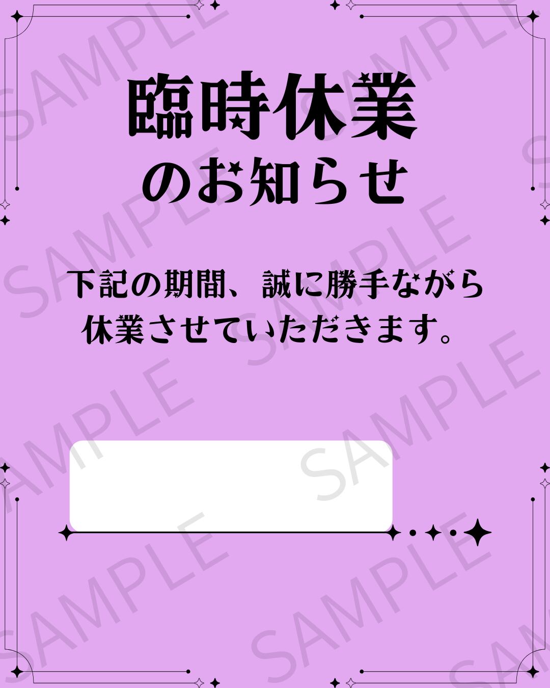 臨時休業のお知らせをSNSで発信する際に便利なデザイン画像です。