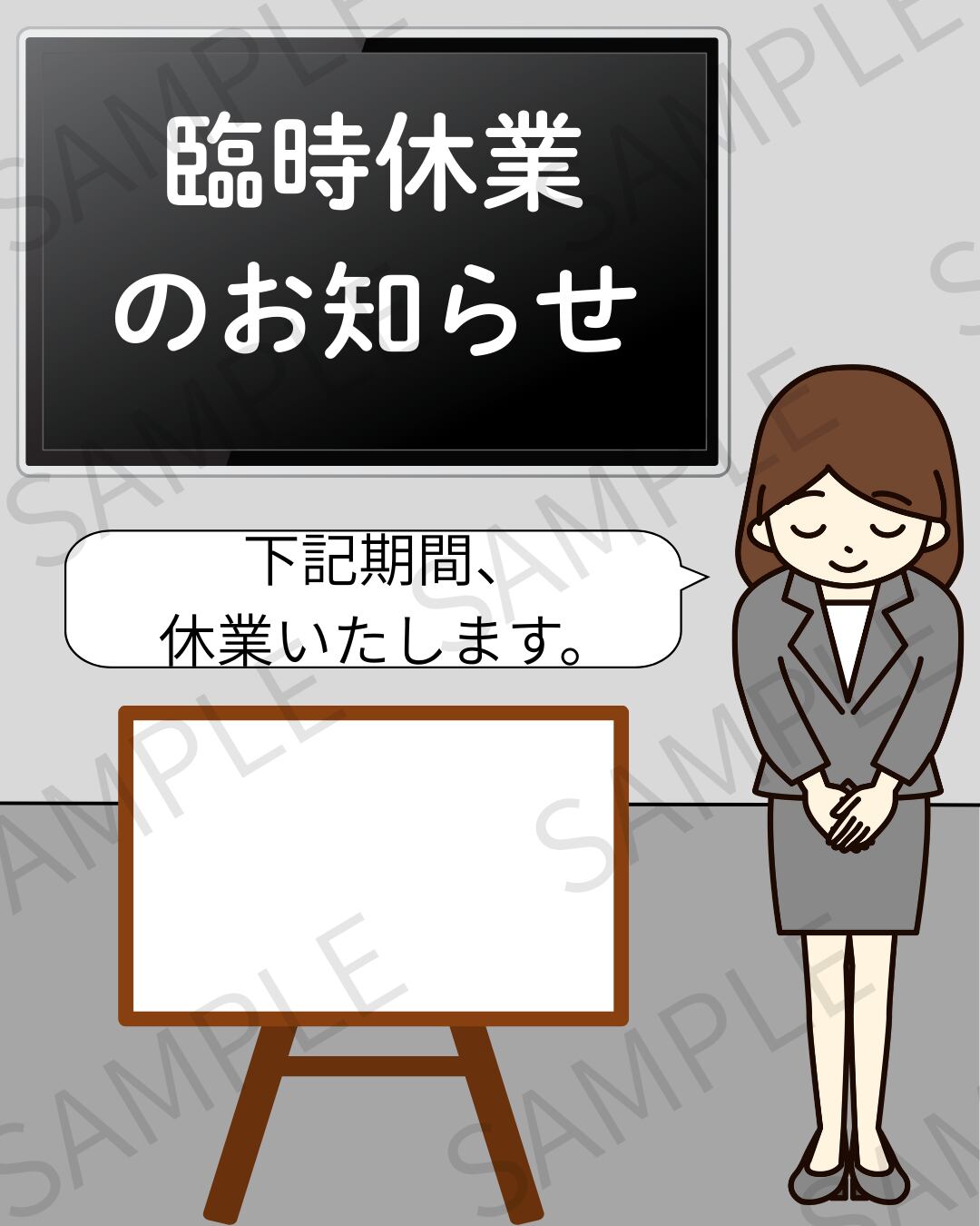 臨時休業のお知らせをSNSで発信する際に便利なデザイン画像です。