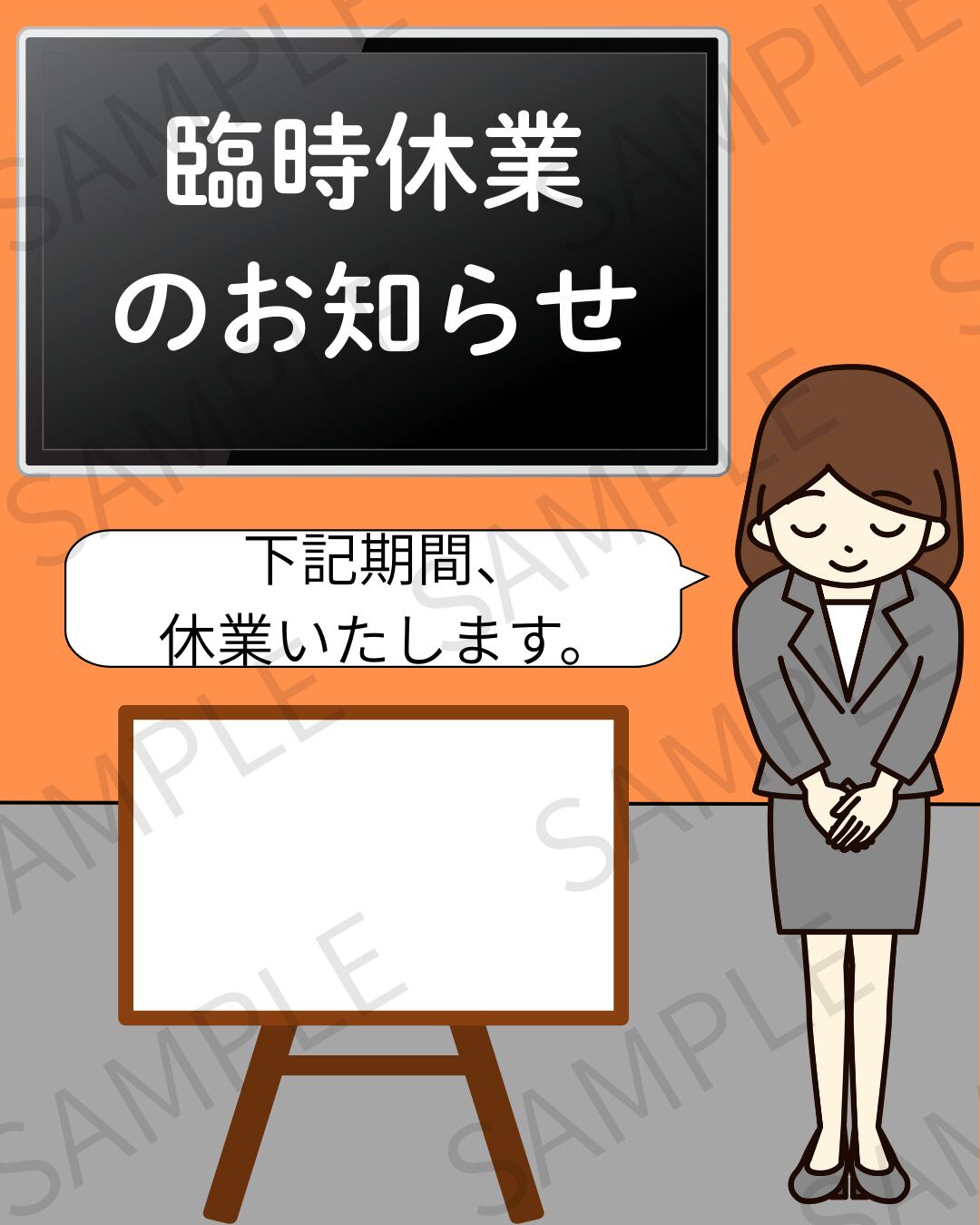 臨時休業のお知らせをSNSで発信する際に便利なデザイン画像です。