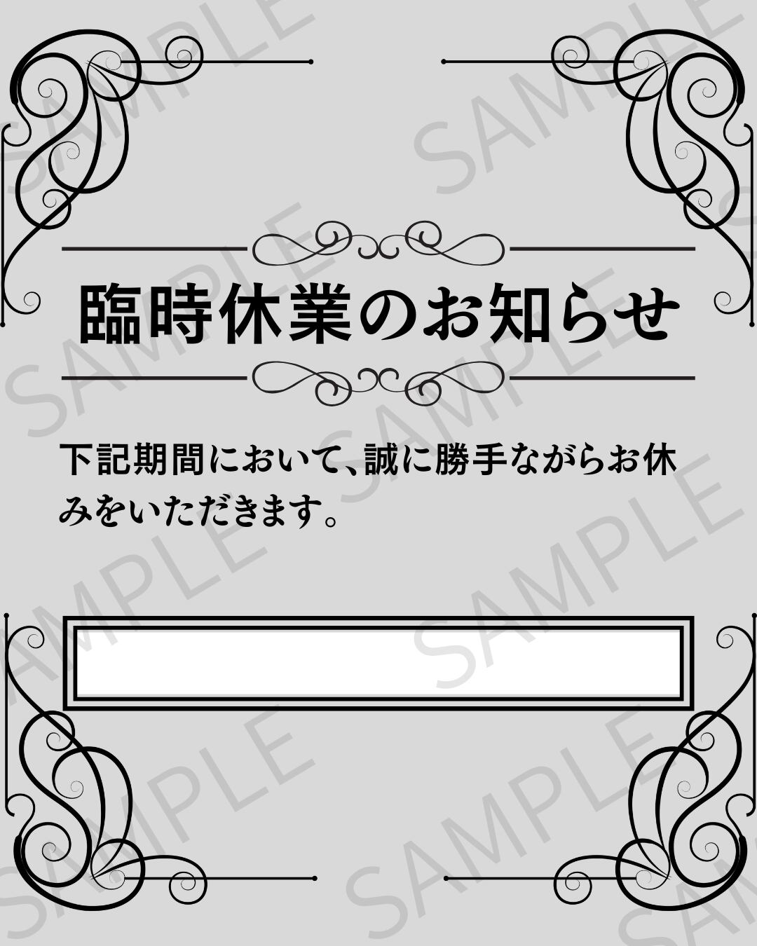 【Instagram投稿用】日付入りの臨時休業のお知らせ画像 デザイン3(グレー)