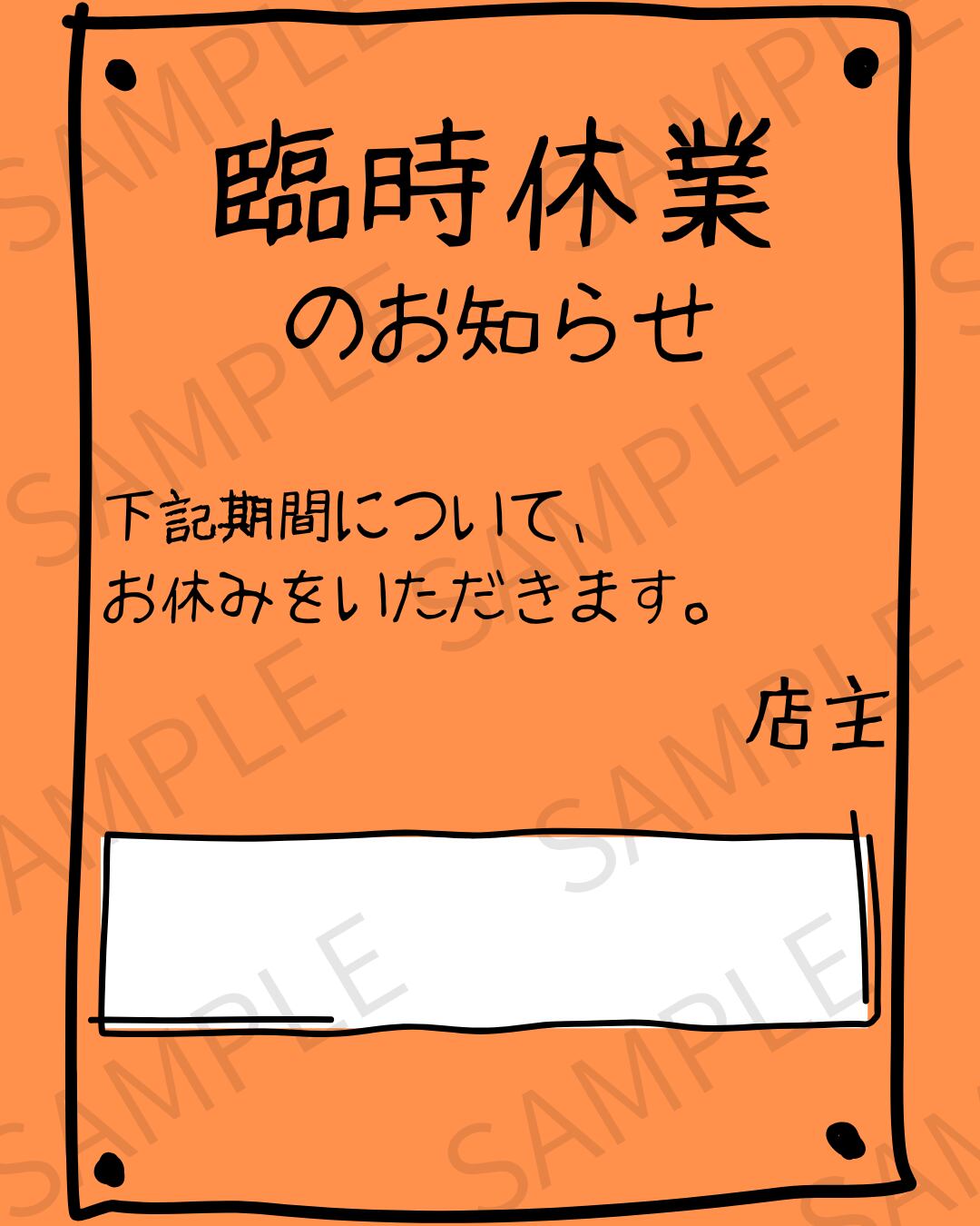 臨時休業のお知らせをSNSで発信する際に便利なデザイン画像です。