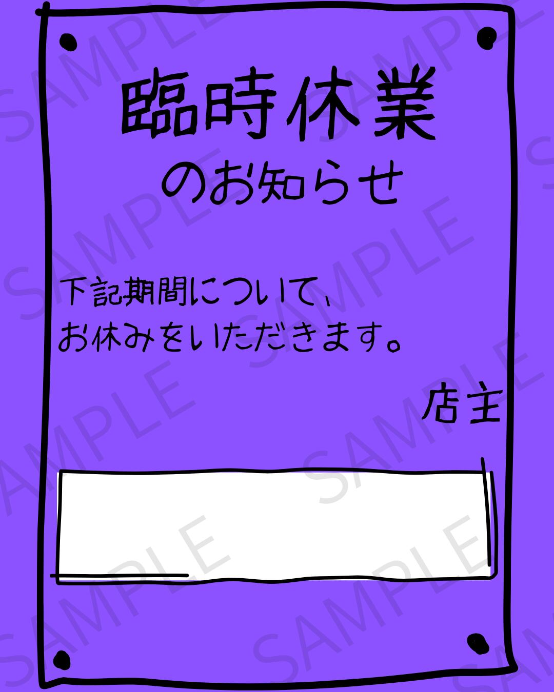 【Instagram投稿用】日付入りの臨時休業のお知らせ画像 デザイン4(パープル)