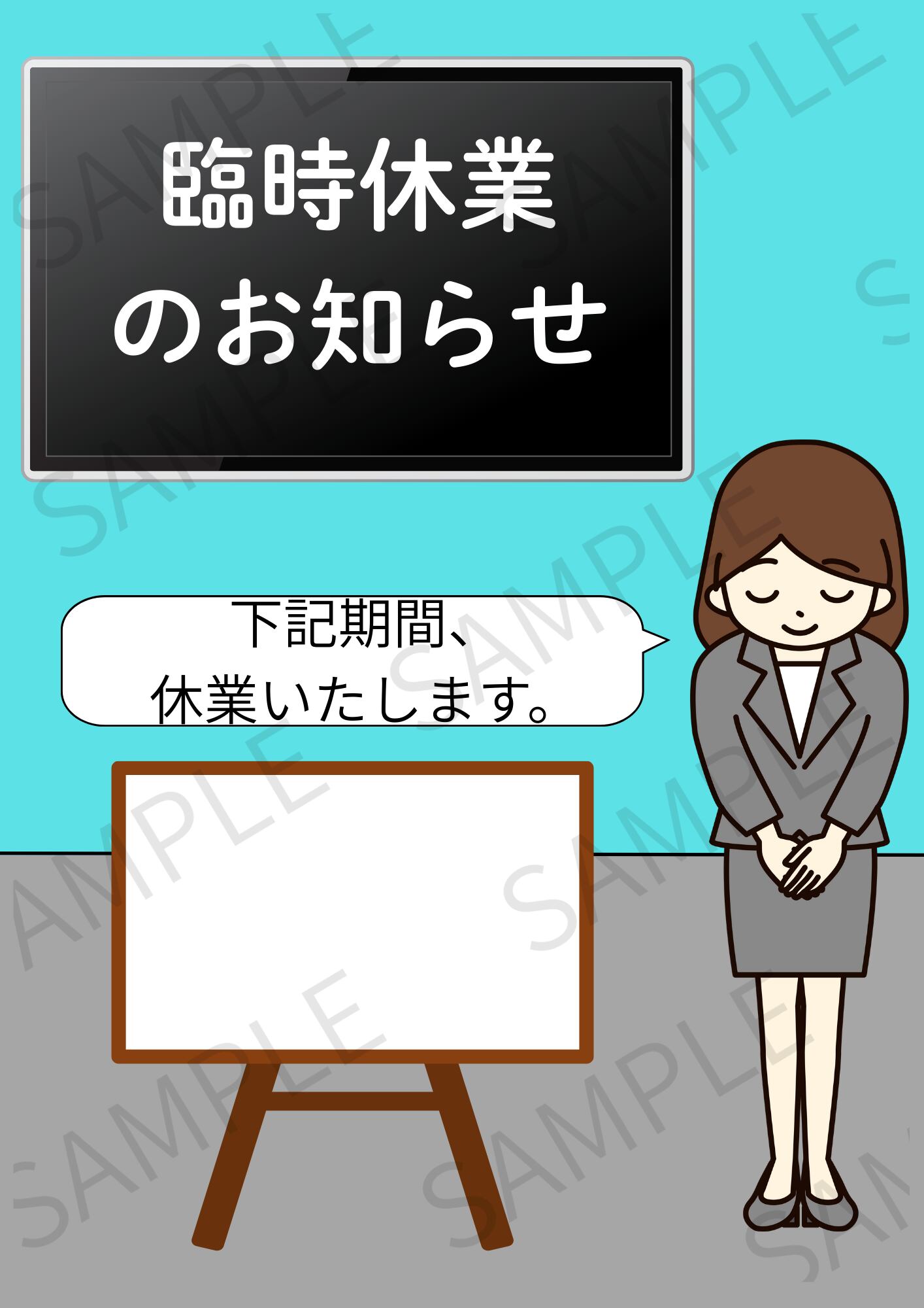 【A4ポスター用】日付入りの臨時休業のお知らせ画像 デザイン1(ライトブルー)