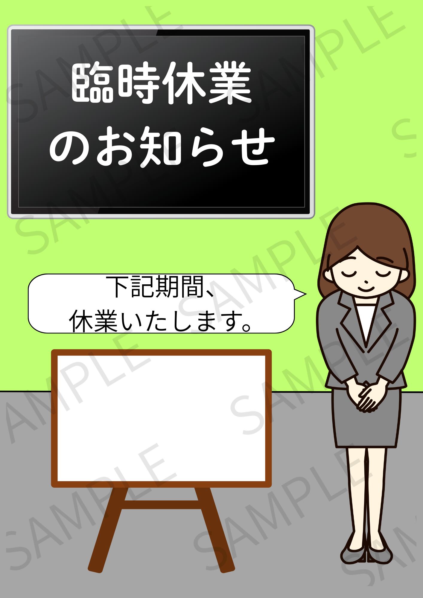 【A4ポスター用】日付入りの臨時休業のお知らせ画像 デザイン1(ライトグリーン)