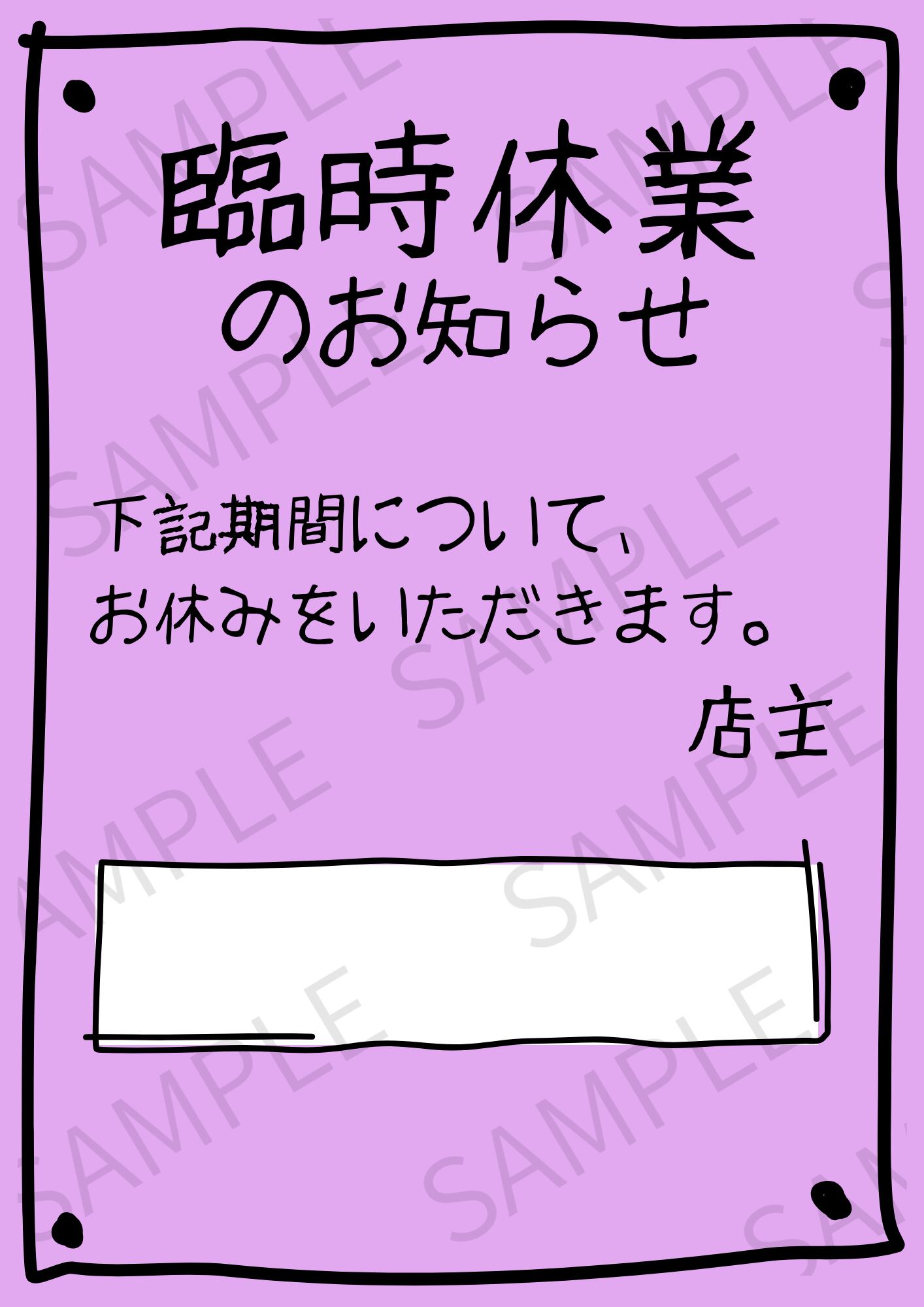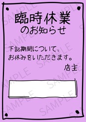 臨時休業のお知らせする際に便利なデザイン画像です。