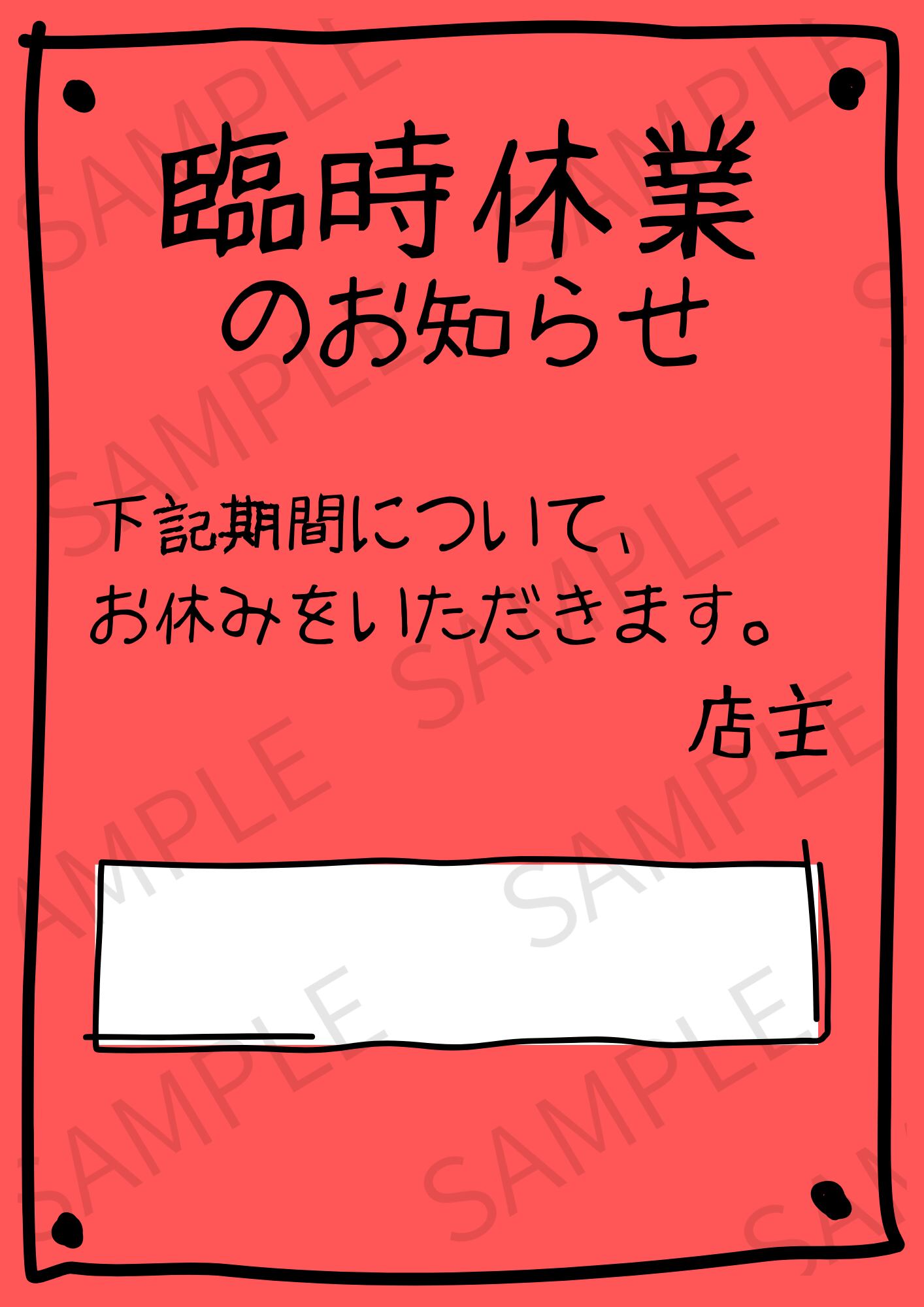 【A4ポスター用】日付入りの臨時休業のお知らせ画像 デザイン3(レッド)