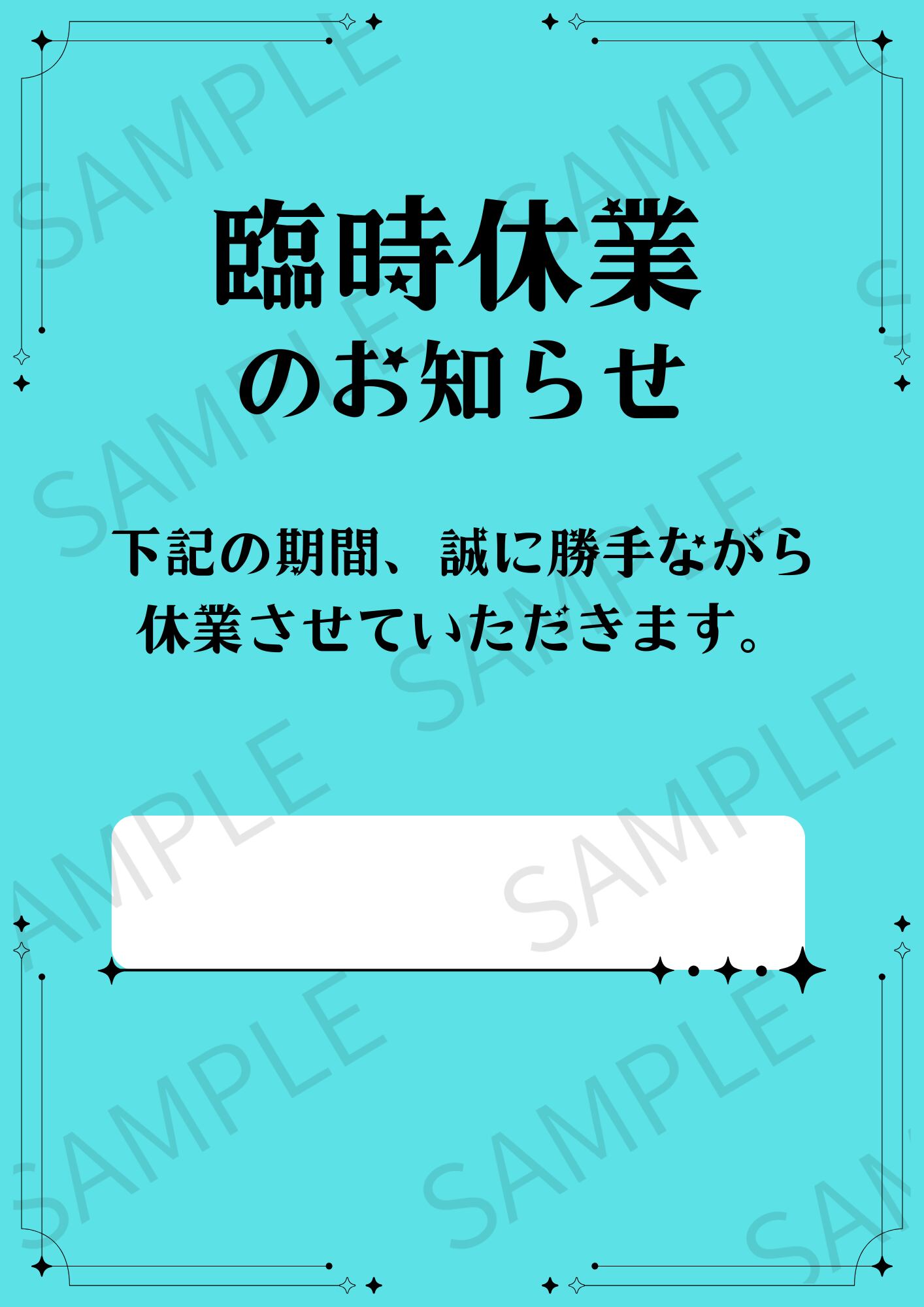 【A4ポスター用】日付入りの臨時休業のお知らせ画像 デザイン4(ライトブルー)