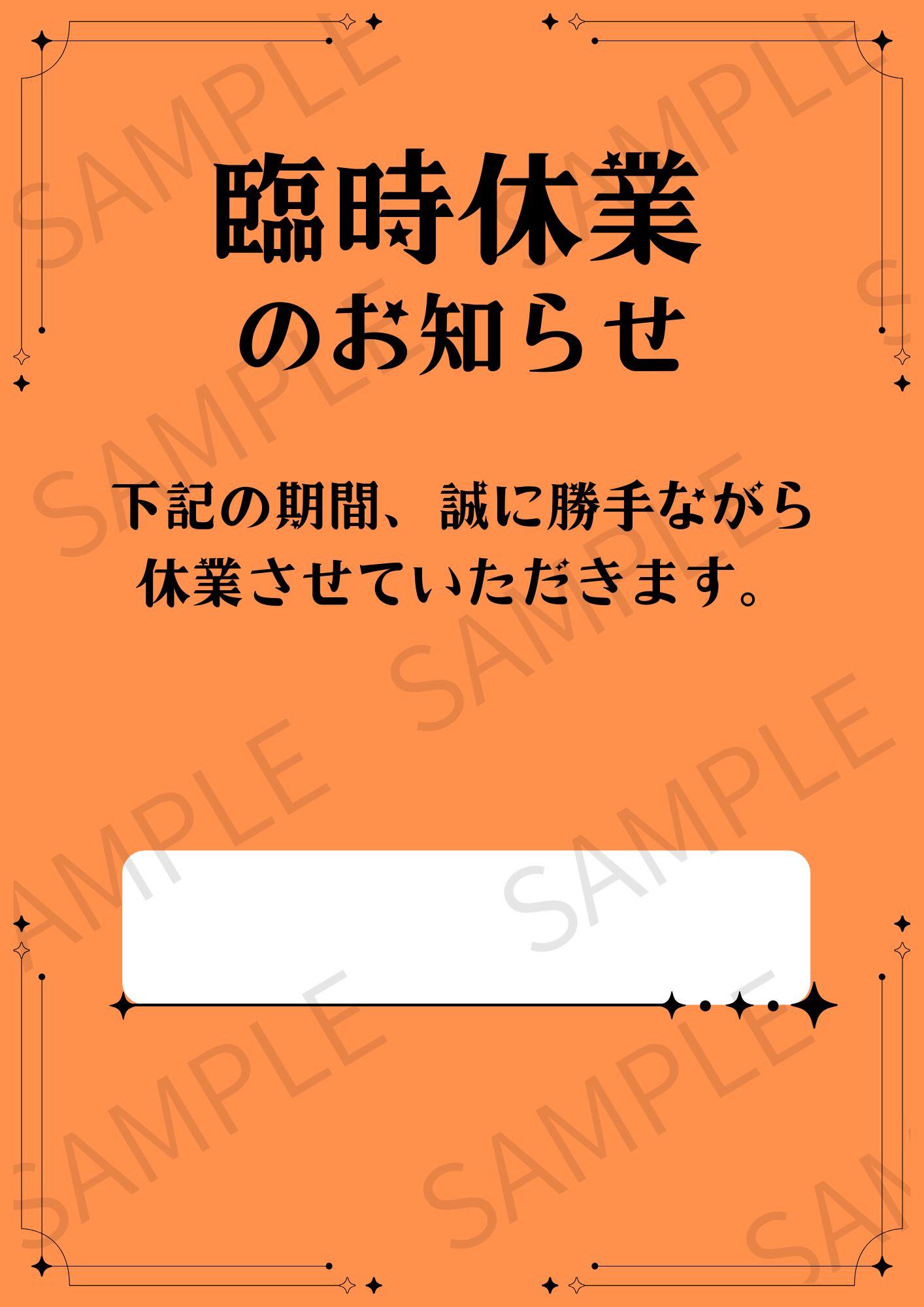 【A4ポスター用】日付入りの臨時休業のお知らせ画像 デザイン4(オレンジ)