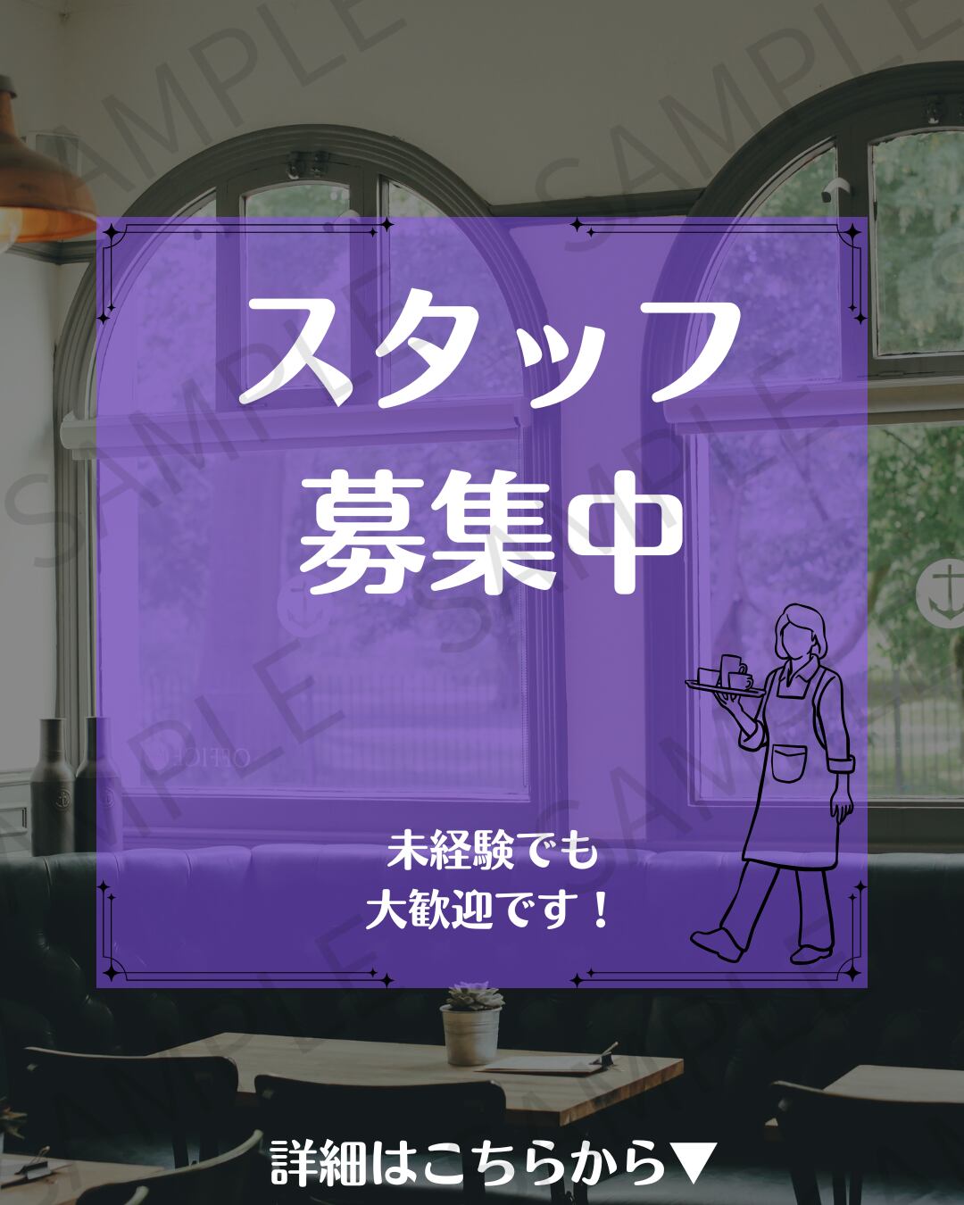 詳細な条件や時給などは記載せず、シンプルに「スタッフ募集」を伝えられるデザインとなっています。