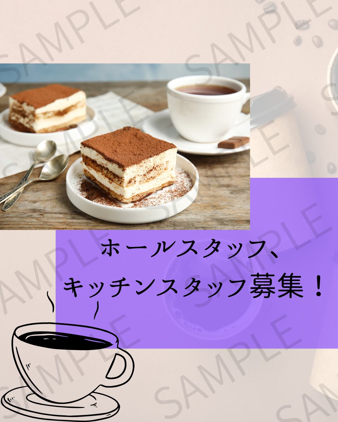 詳細な条件や時給などは記載せず、シンプルに「スタッフ募集」を伝えられるデザインとなっています。