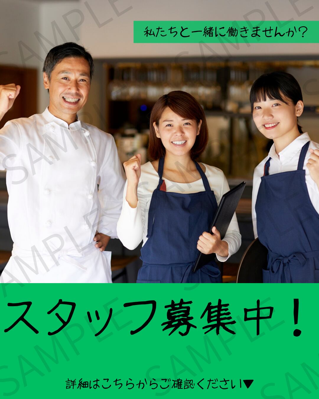 飲食店でご利用いただける「スタッフ募集」用のInstagram投稿サイズ(4:5比率)の画像です。