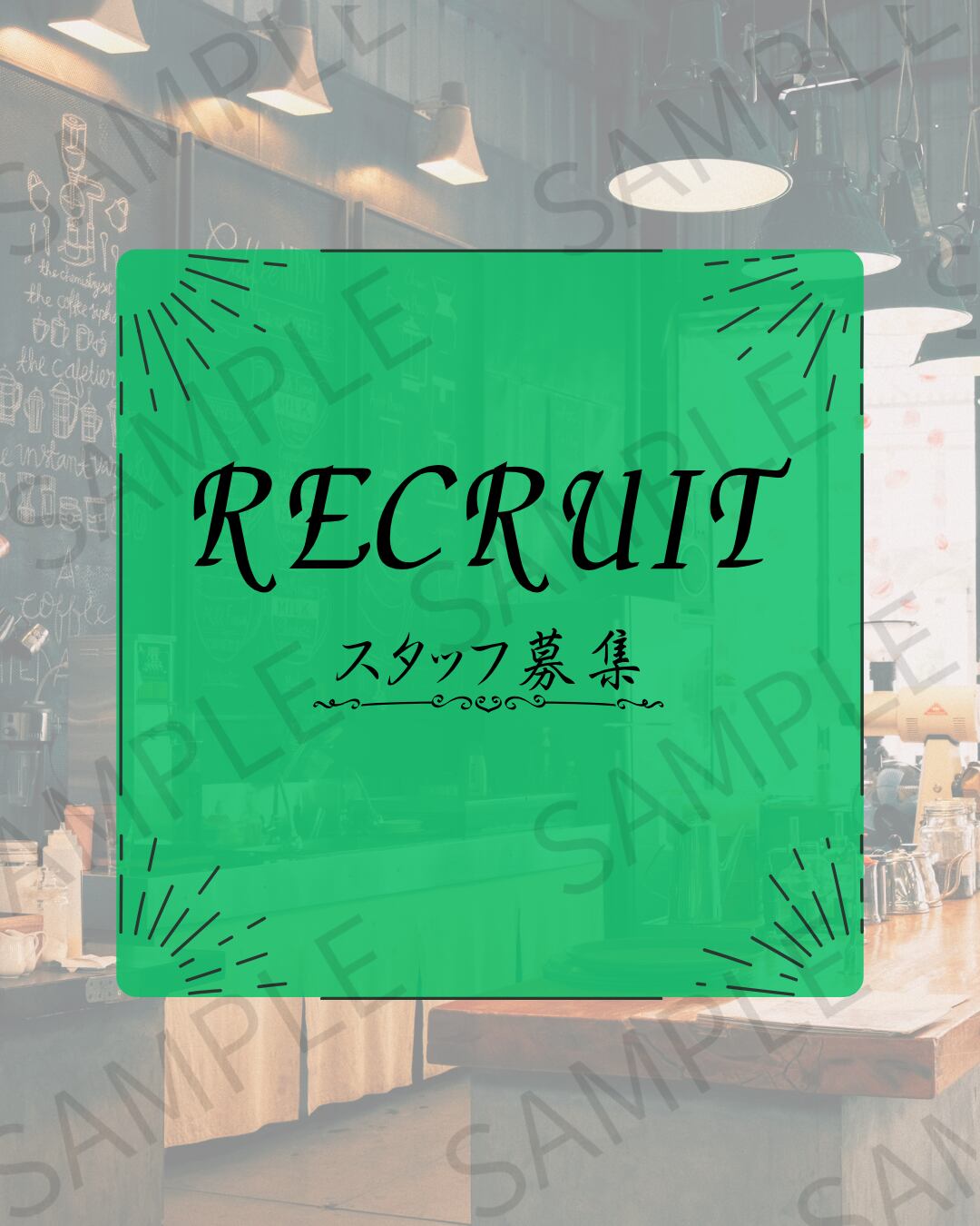 詳細な条件や時給などは記載せず、シンプルに「スタッフ募集」を伝えられるデザインとなっています。