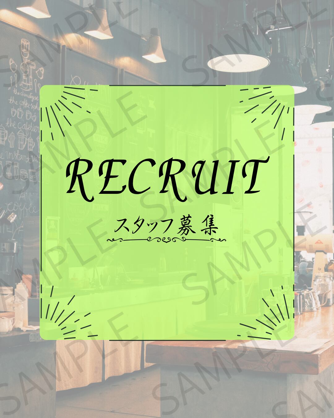 詳細な条件や時給などは記載せず、シンプルに「スタッフ募集」を伝えられるデザインとなっています。