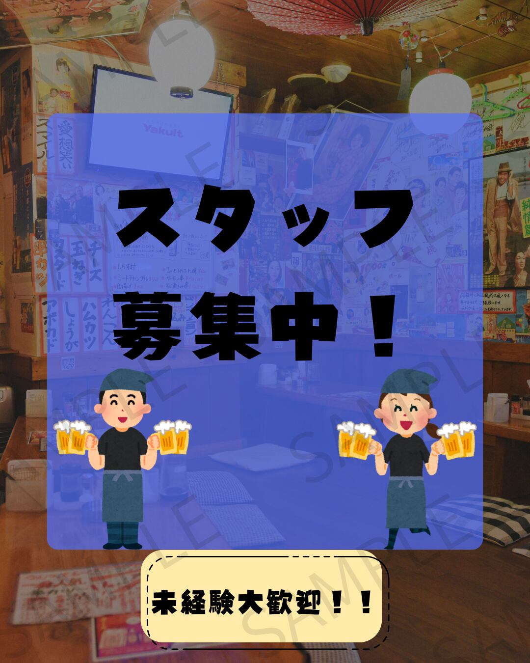 詳細な条件や時給などは記載せず、シンプルに「スタッフ募集」を伝えられるデザインとなっています。