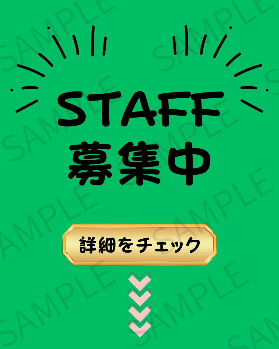 詳細な条件や時給などは記載せず、シンプルに「スタッフ募集」を伝えられるデザインとなっています。