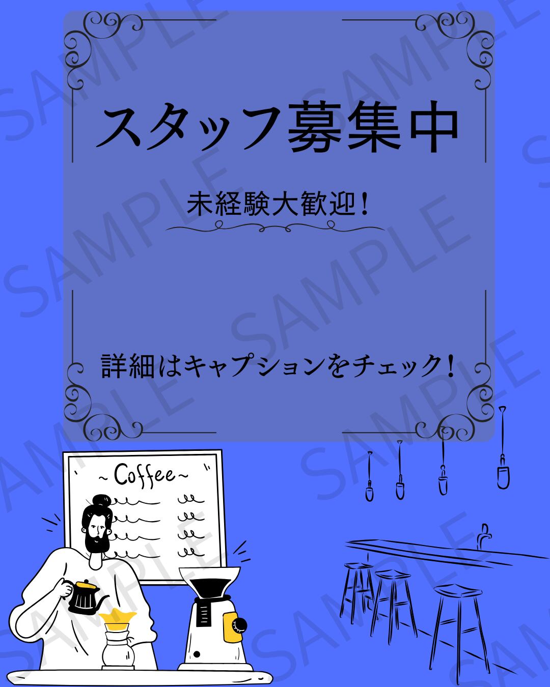 詳細な条件や時給などは記載せず、シンプルに「スタッフ募集」を伝えられるデザインとなっています。