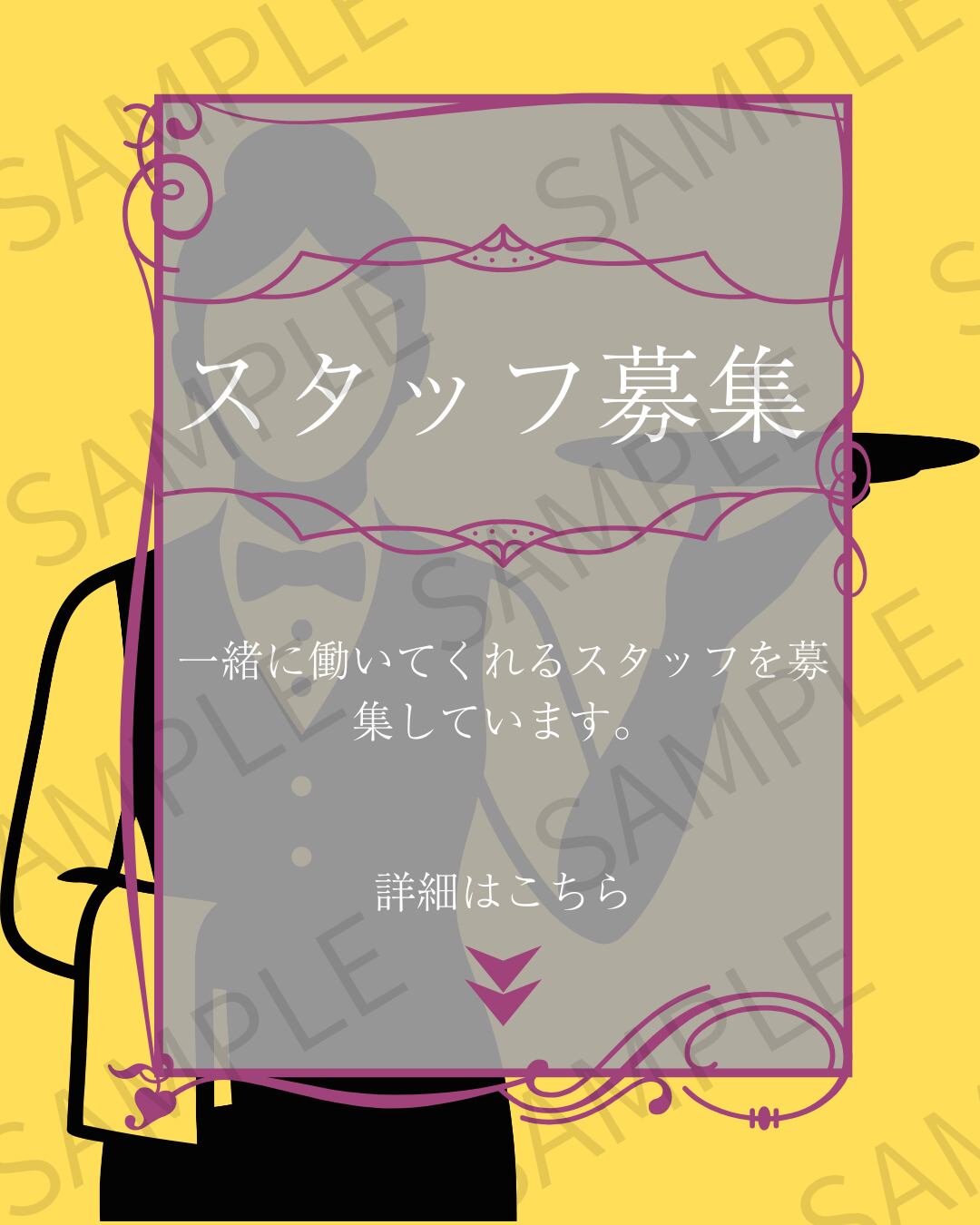 詳細な条件や時給などは記載せず、シンプルに「スタッフ募集」を伝えられるデザインとなっています。