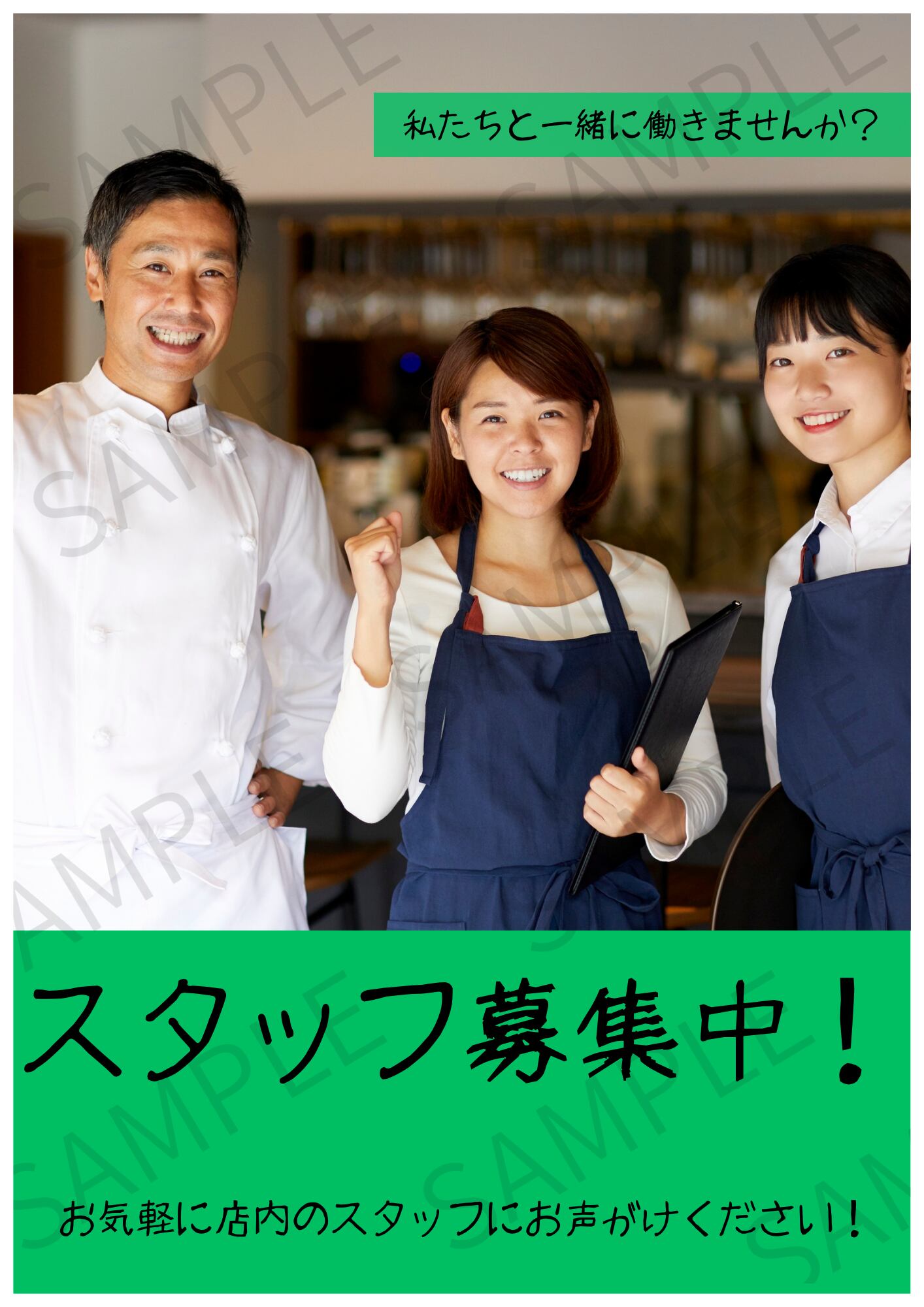 【A4ポスター用】スタッフ募集画像 デザイン3(グリーン)